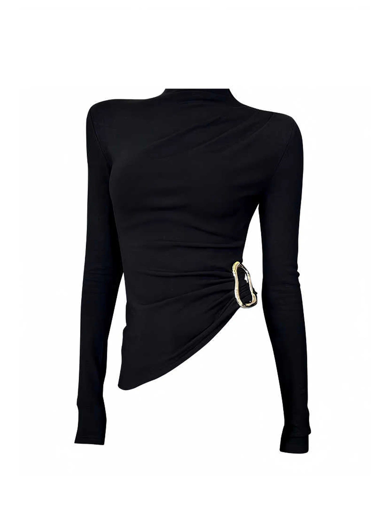 Women Black Gothic T-shirt Y2k Gyaru Tee Top Vintage 90s Aesthetic Solid Color Long Sleeve Turtleneck T-shirts Emo 2000s Clothes