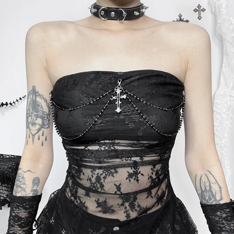 Subculture Gothic Dark New Sexy Women Tops Slightly Revealing Court Vintage Design Punk Trendy Female Vest Chic Woman Clothing
