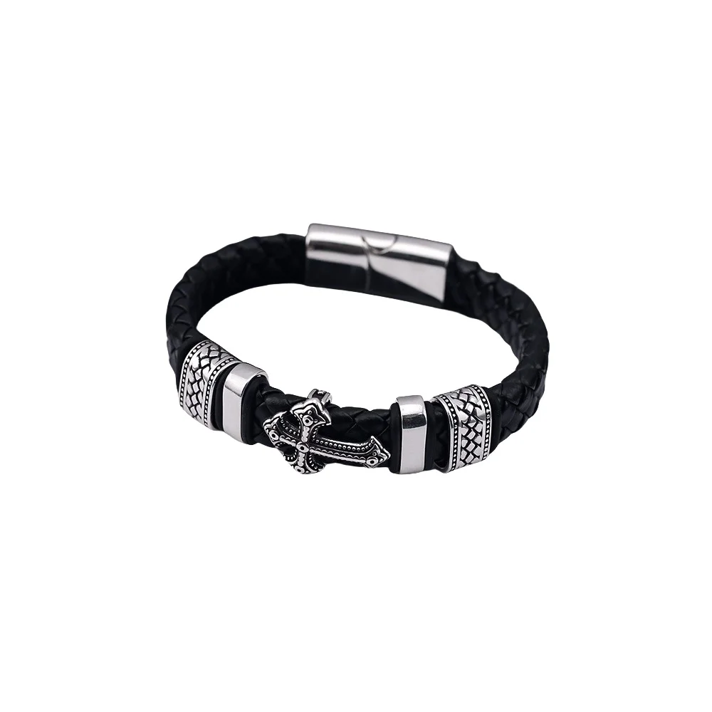 Tide Leather Rope Magnet Buckle Bracelet Luxury Punk Style for Men Women Thai Silver Small Group Light Fashion String Bracelet