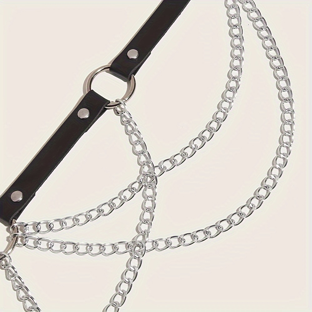 1pc Gothic Black PU Leather Waist Chain Belt With Chain Pendant Adjustable Harness Belt