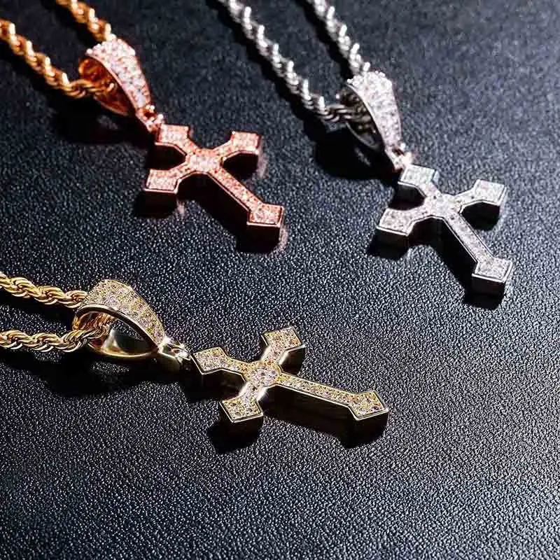 14K Gold Plated Christian Zircon Iced Cross Pendant Gothic Jesus Necklace Rope Chain Hip Hop Style Men Women’s Gift