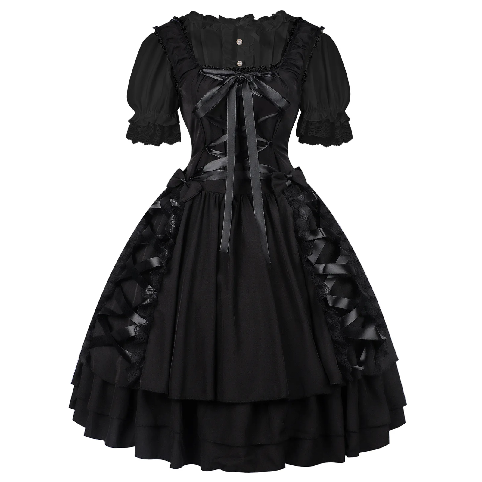 Costume Party Gothic Dress Japanese Victorian Lolita Vintage Lace Princess Holiday Dresses Women Dark Spaghetti Strap Robe Femme