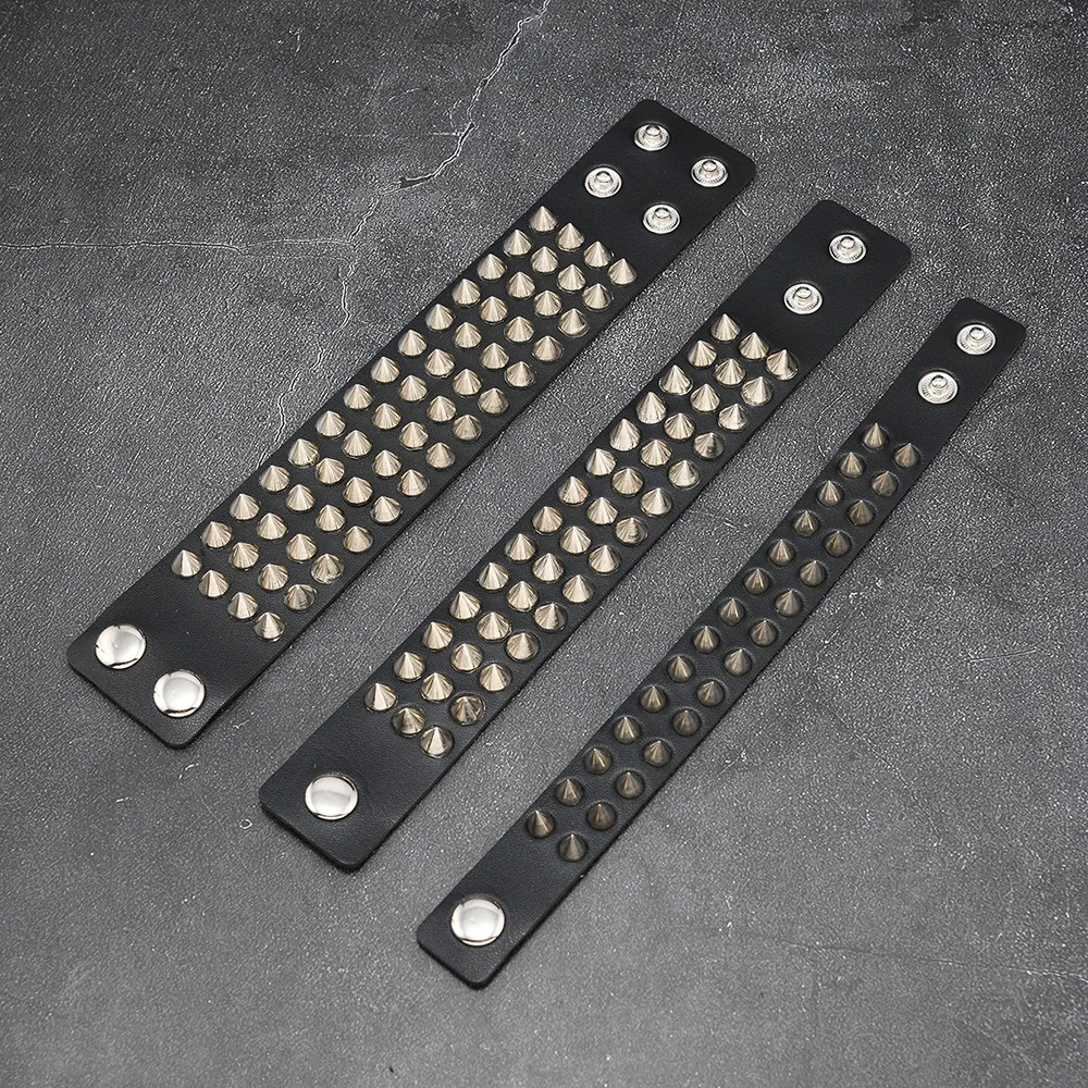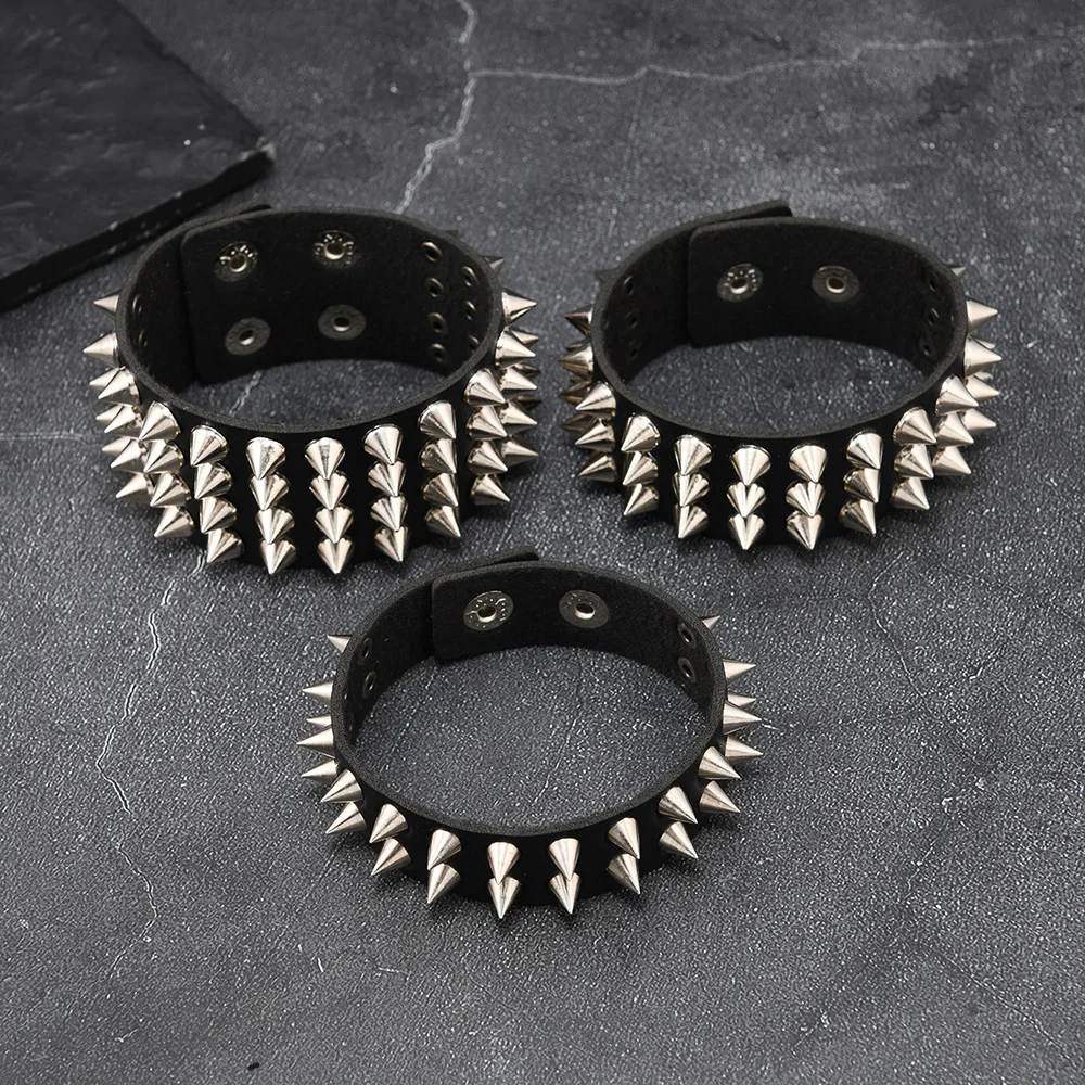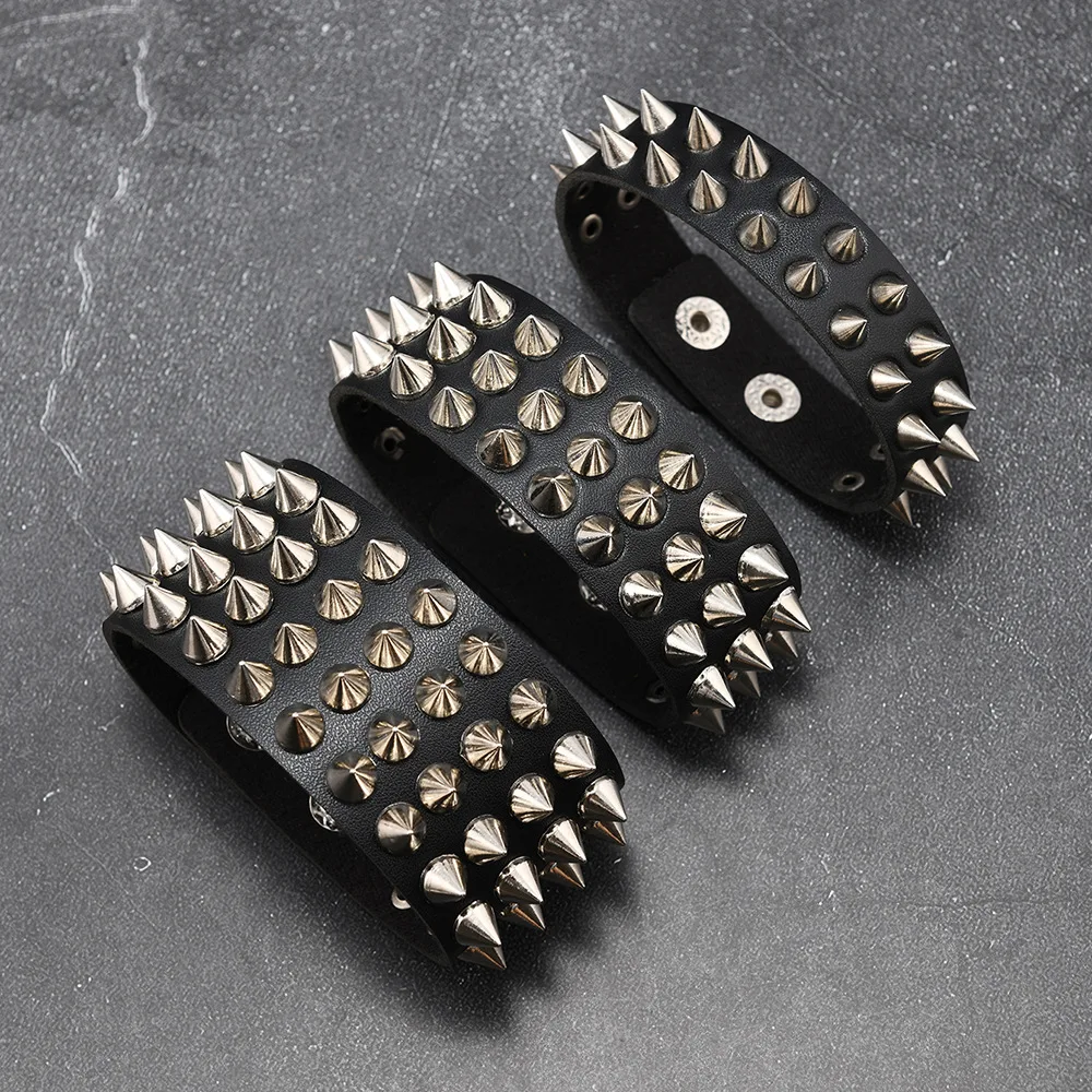 European American Punk Exaggerated Rock Spike Bracelet Men’s Trendy Customizable Leather Charm Bracelet Cross-Border Buddhism