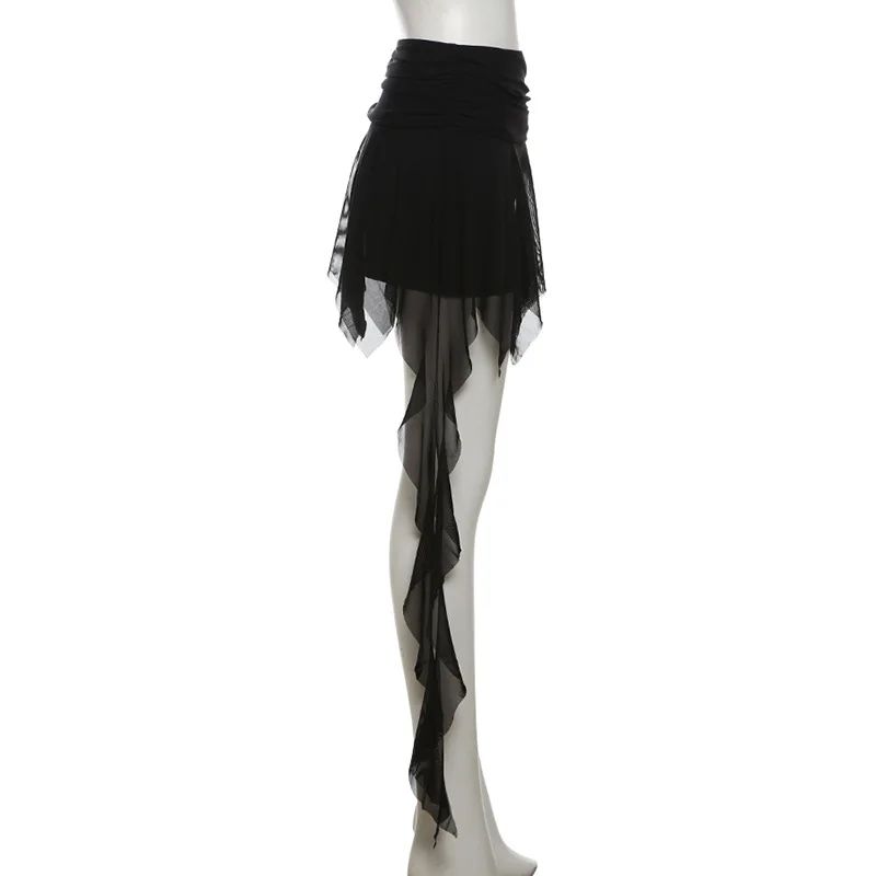 Goth Dark 2000S Aesthetic Irregular Hem Short Skirt Gothic Fashion High Waist Slim A-Line Skirts E-girl Streetwear Mesh Bottoms