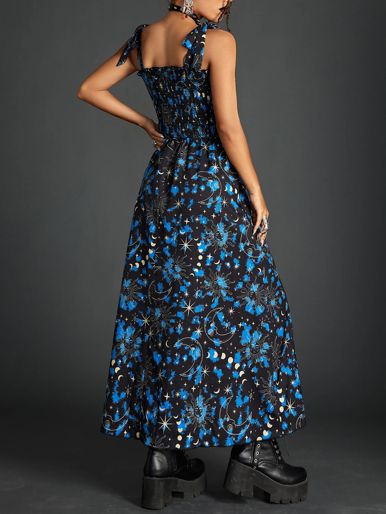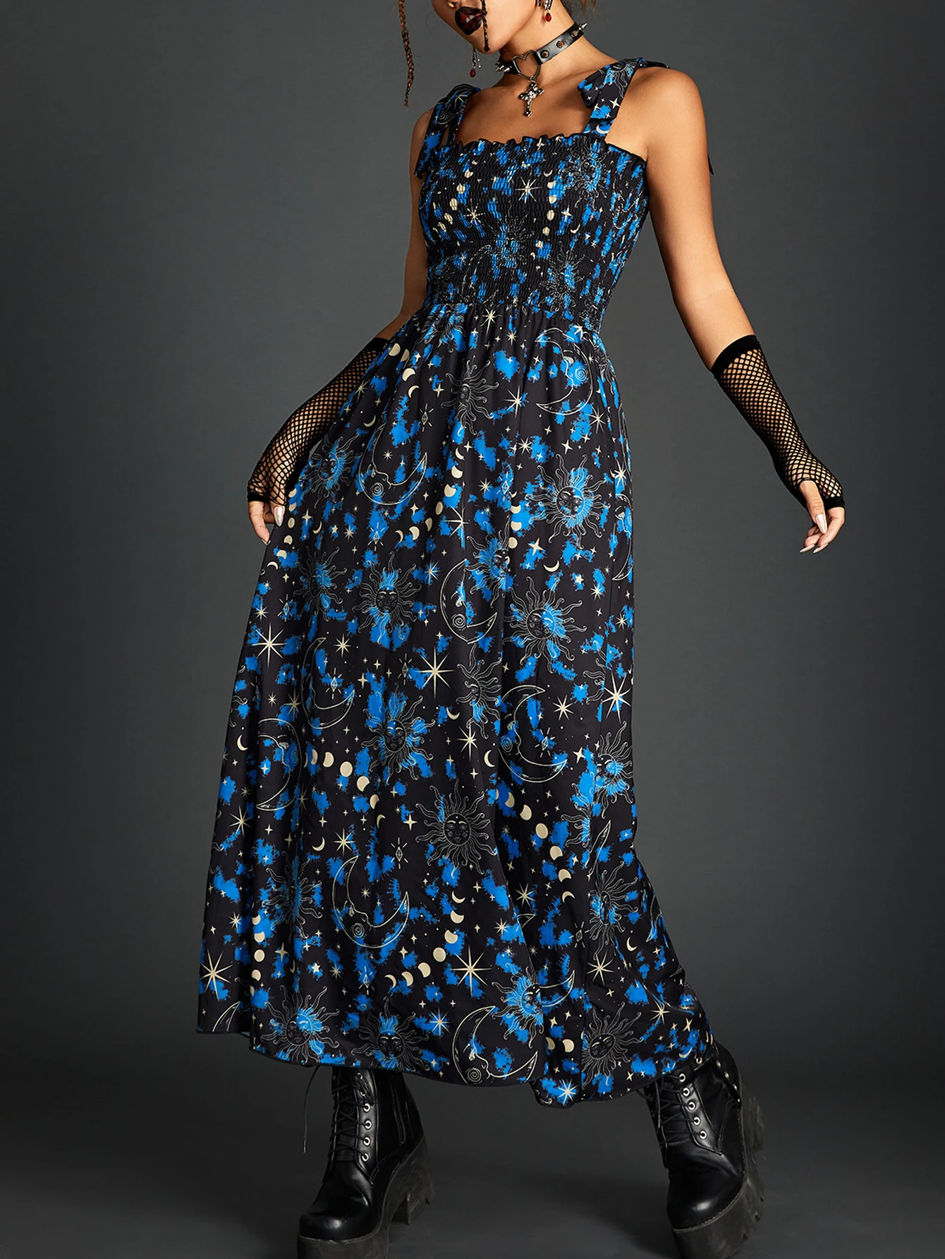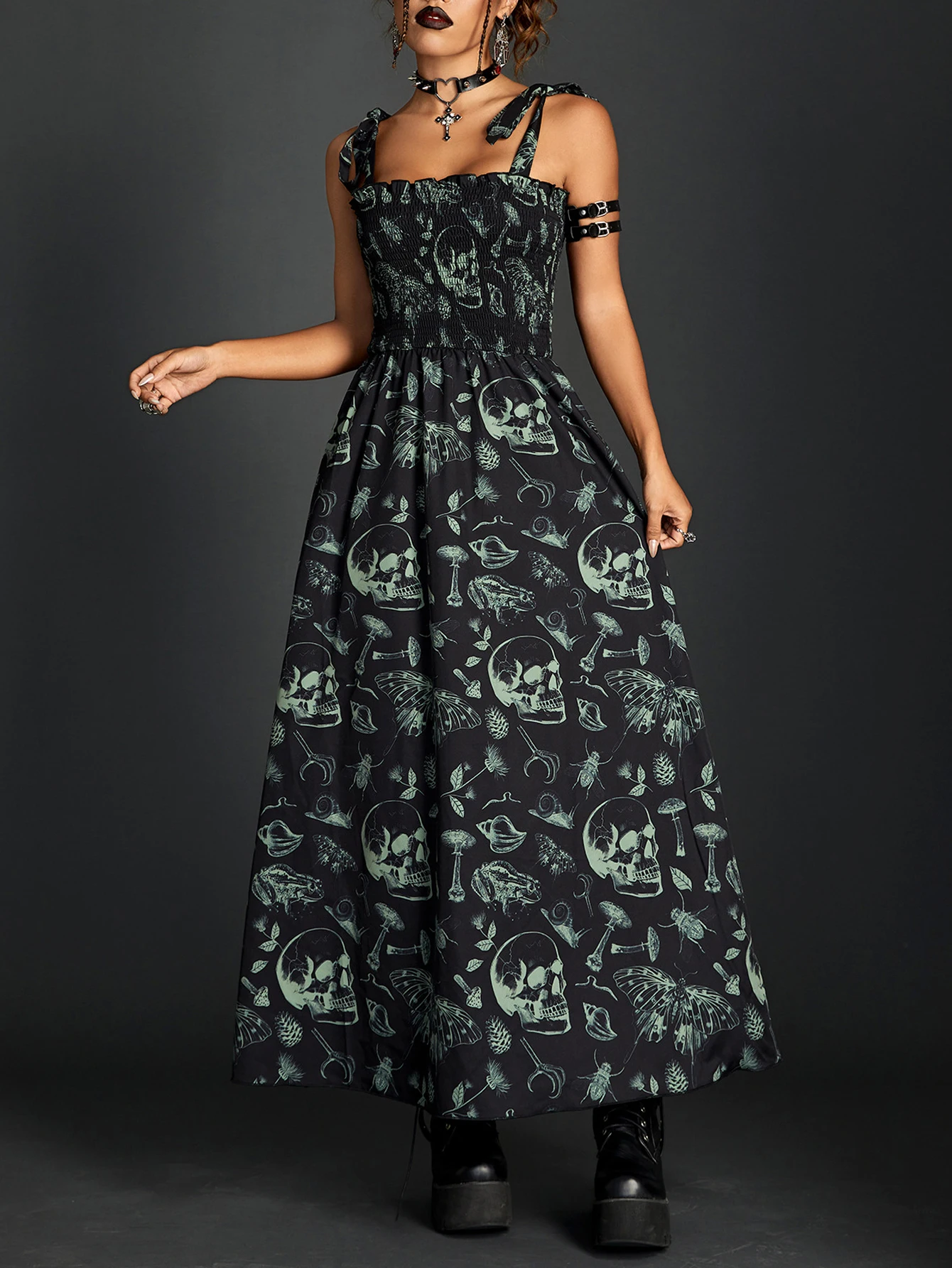 Goth Dark Fairy Grunge Y2k Aesthetic Skull Graphic Dresses Mall Gothic Shirring Lace Up Long Dress Punk A-line Slim Emo Clothing