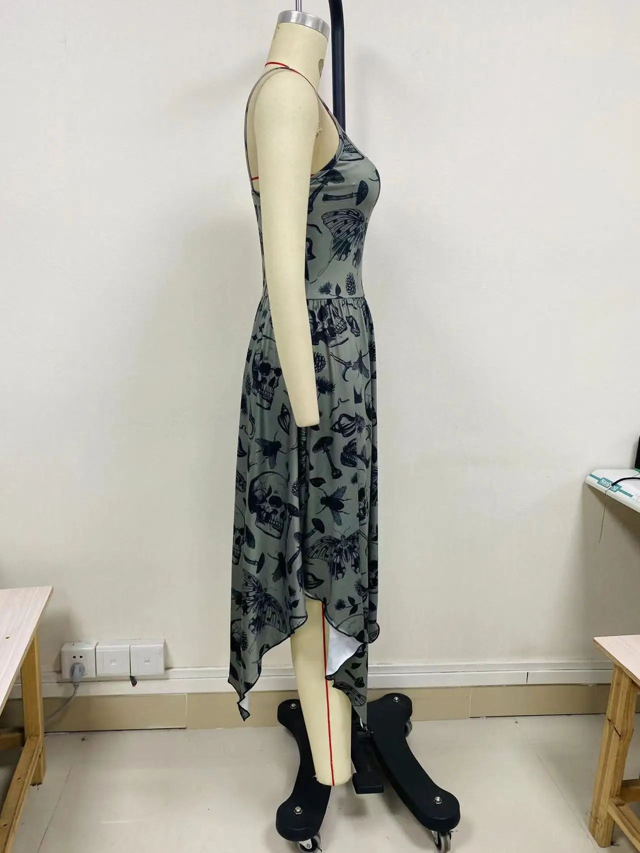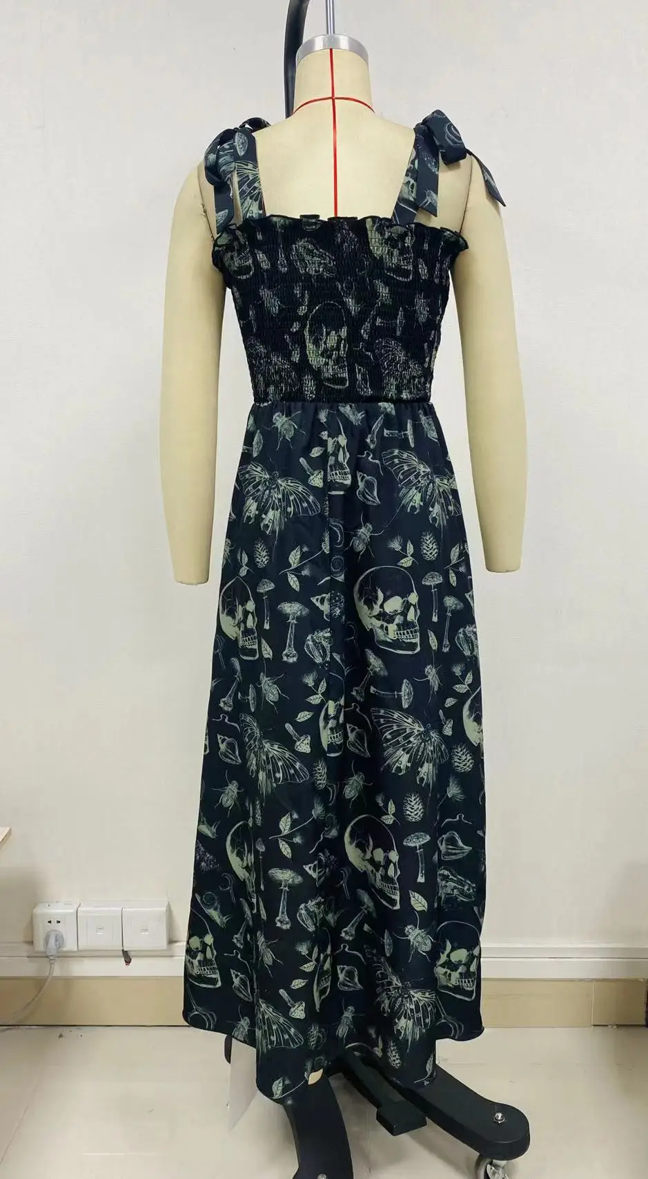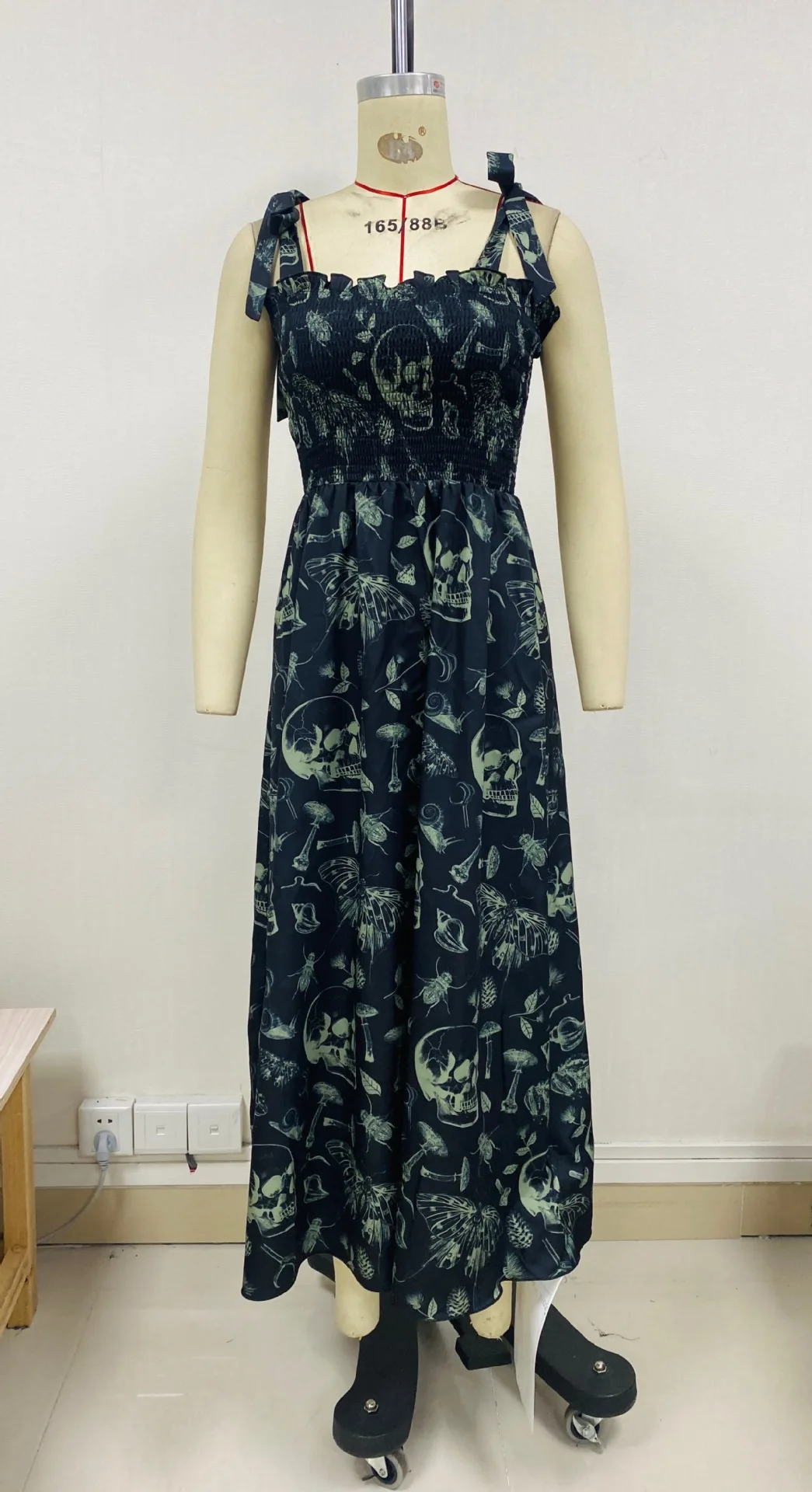 Model Number: Mall Gothic Skull Printed Long Dresses