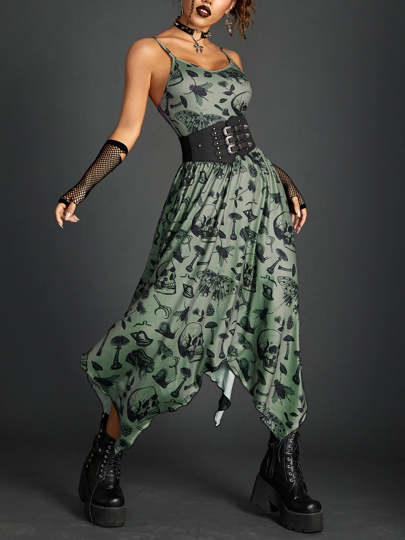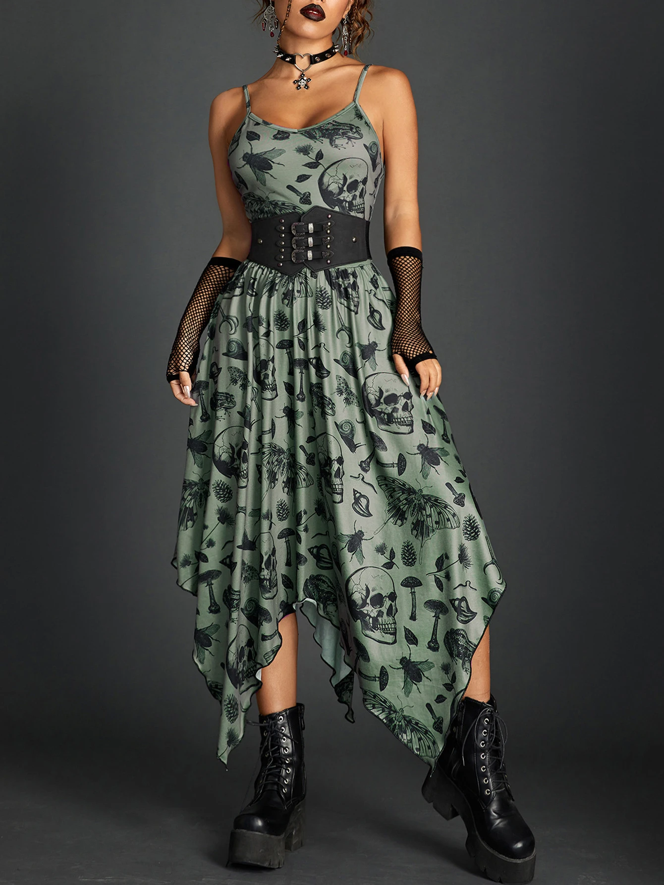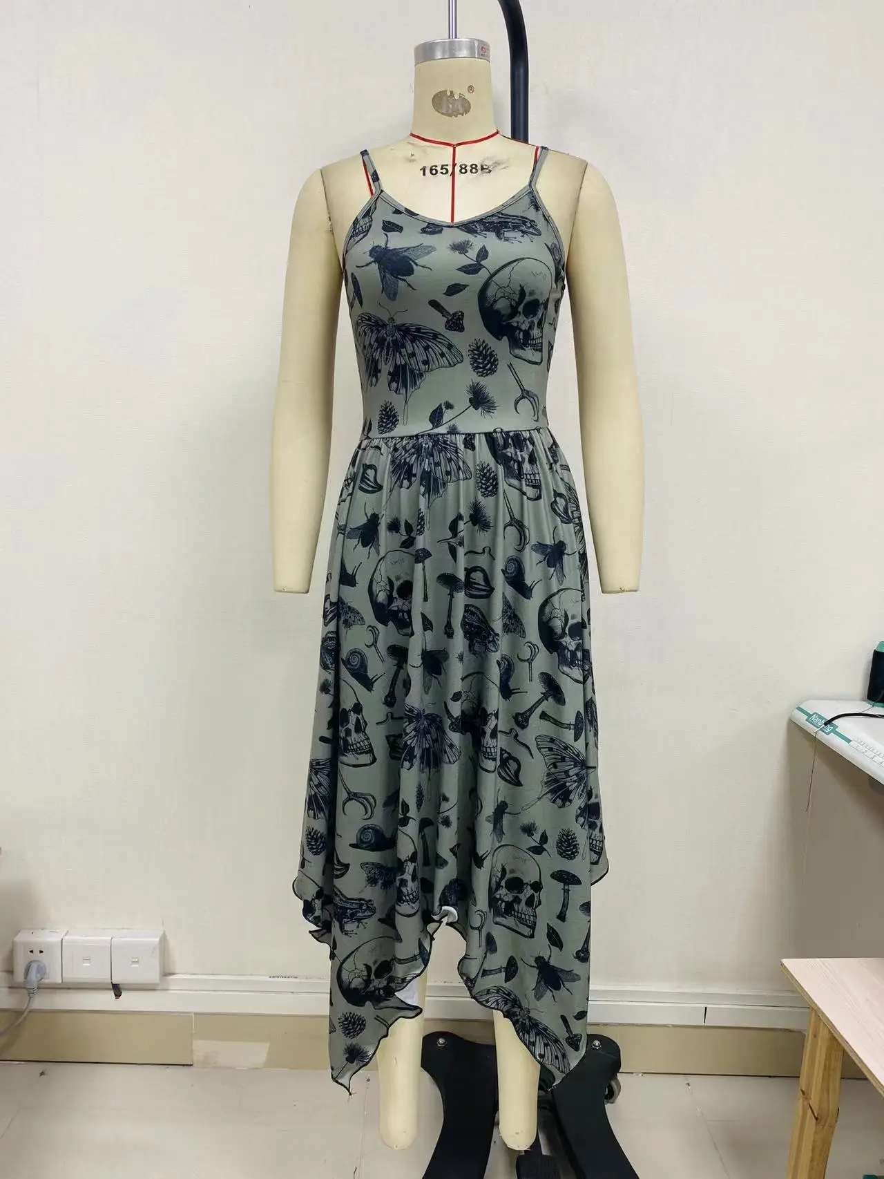 Model Number: Mall Gothic Skull Printed Long Dresses
