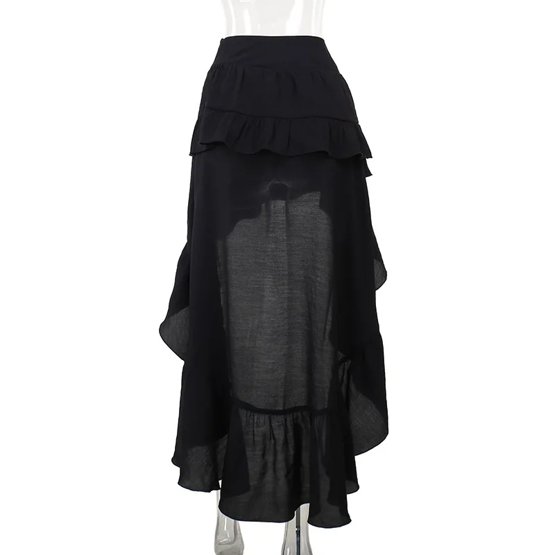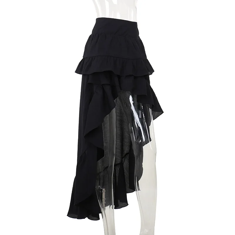 Goth Dark Kawaii Black Tiered Skirts 90S Retro Irregular Hem Party Bottoms Mall Gothic Women Fashion Dragging Skirt Alt Clothing