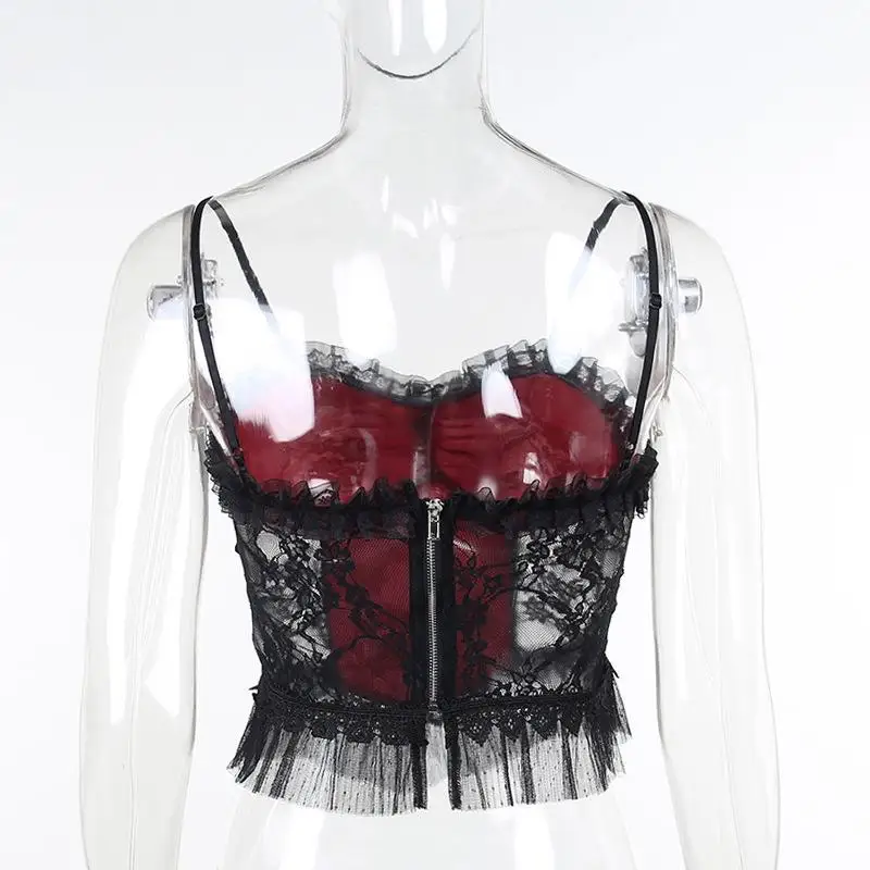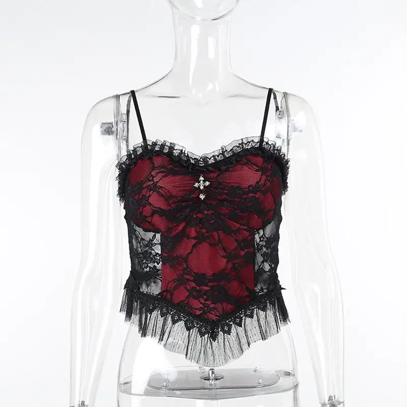 Goth Sexy Lace Corset Crop Tops Camis Y2K Haraiuku Aesthetic Black Red Cross Basic Tank Top Summer Women Grunge Streetwear