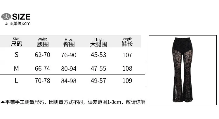 Gothic Black Summer Flare Pants Women Lolita Streetwear See Through Sexy High Waist Pants Aesthetic Punk Grunge Trousers