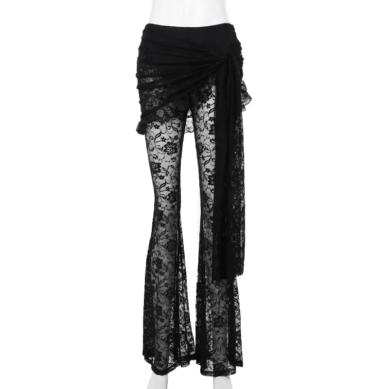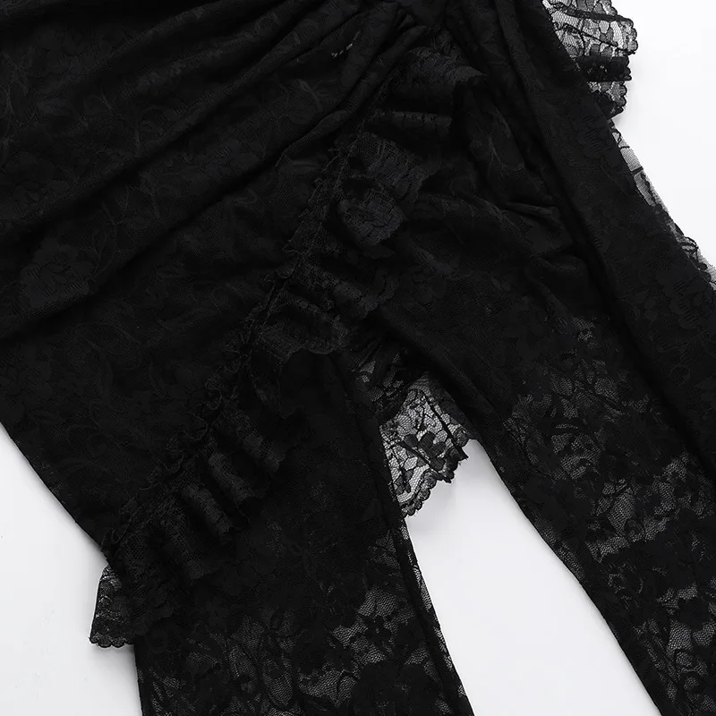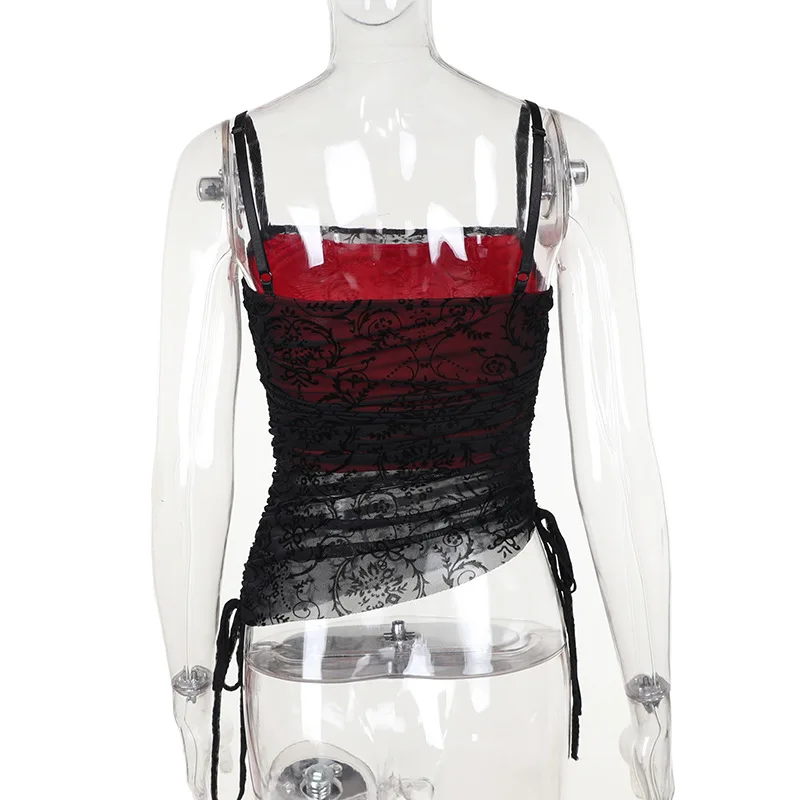 Gothic Lace Top Women’s Vintage Y2k Sexy Sleeveless Backless Lace Tank Tops Pants Asymmetric Clubwear Outft