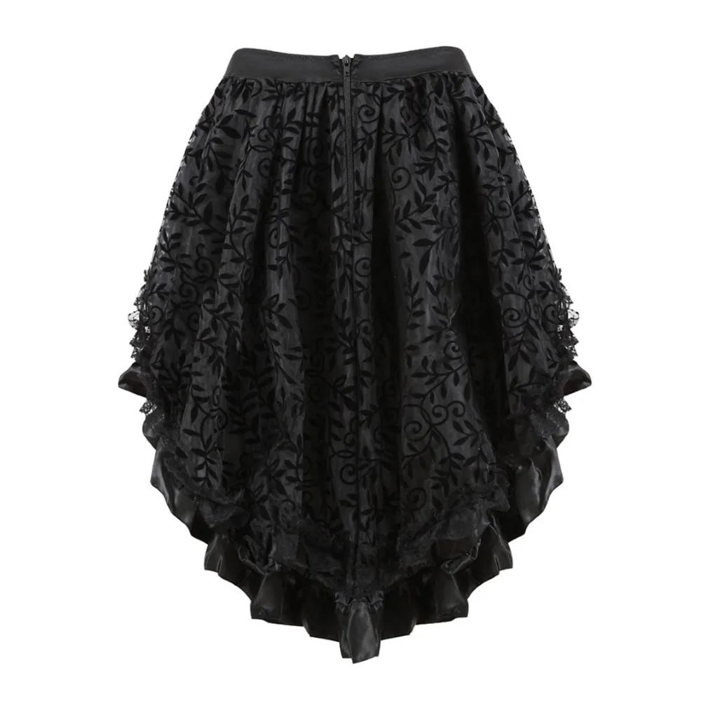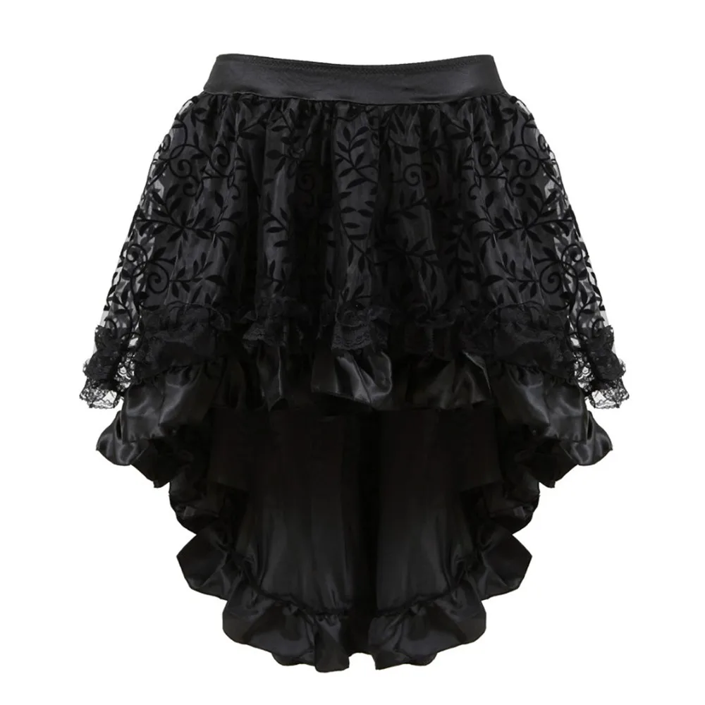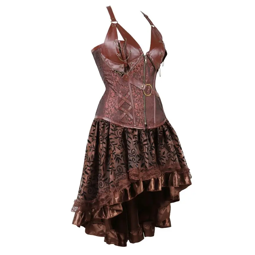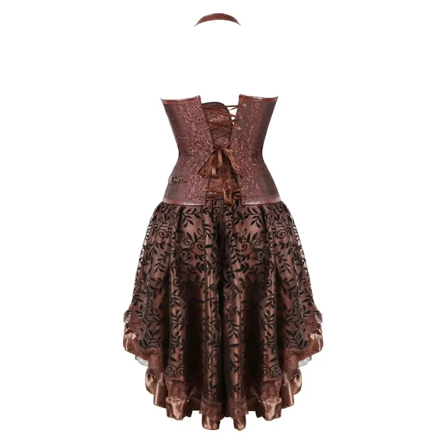 Gothic Leather Corsets Dress Steampunk Pirate Corset Bustier Top With Floral Lace Skirt Set Burlesque Halloween Costume