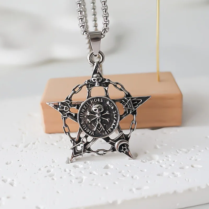 | Item Name | Gothic Punk Skull Head Pentacle Pendant Necklaces for Men Pentagram Star Sweater Chains Jewelry |