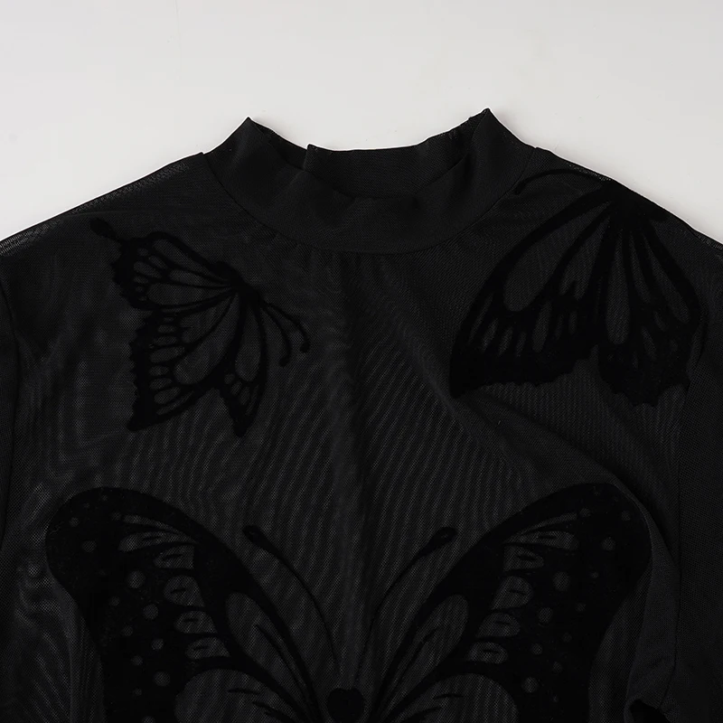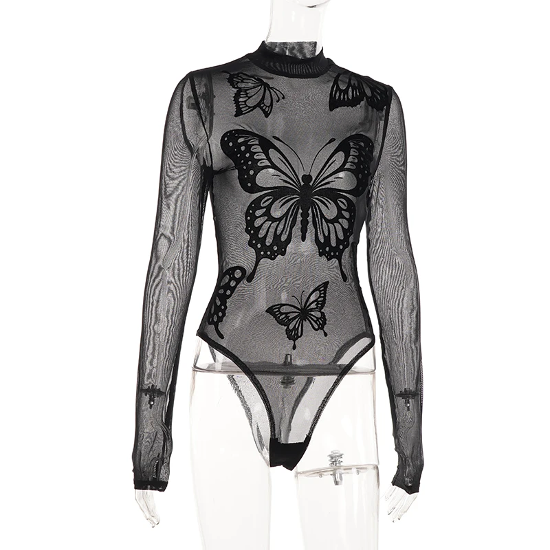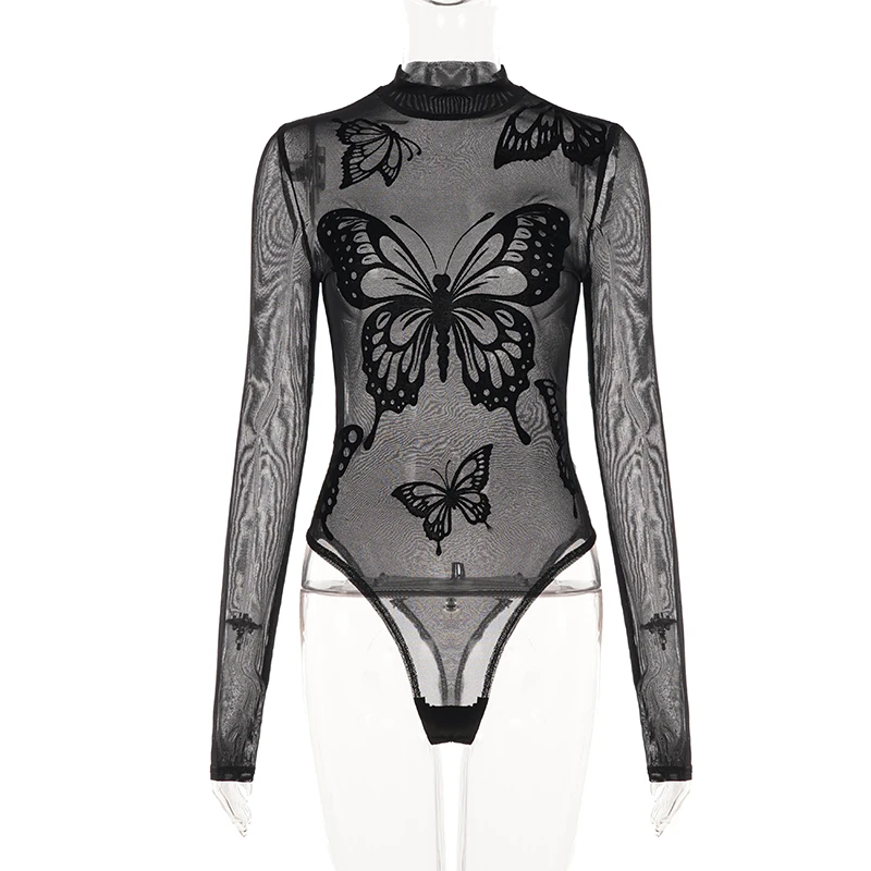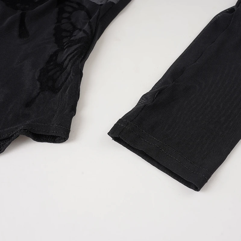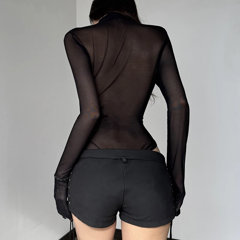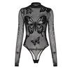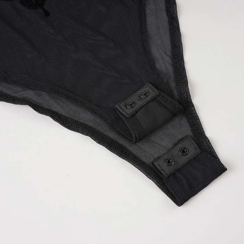Gothic Solid Sexy Knitting Bodysuit High Stretch Mesh Tight-Fitting Sleeveless Round Neck Customizable Skinny