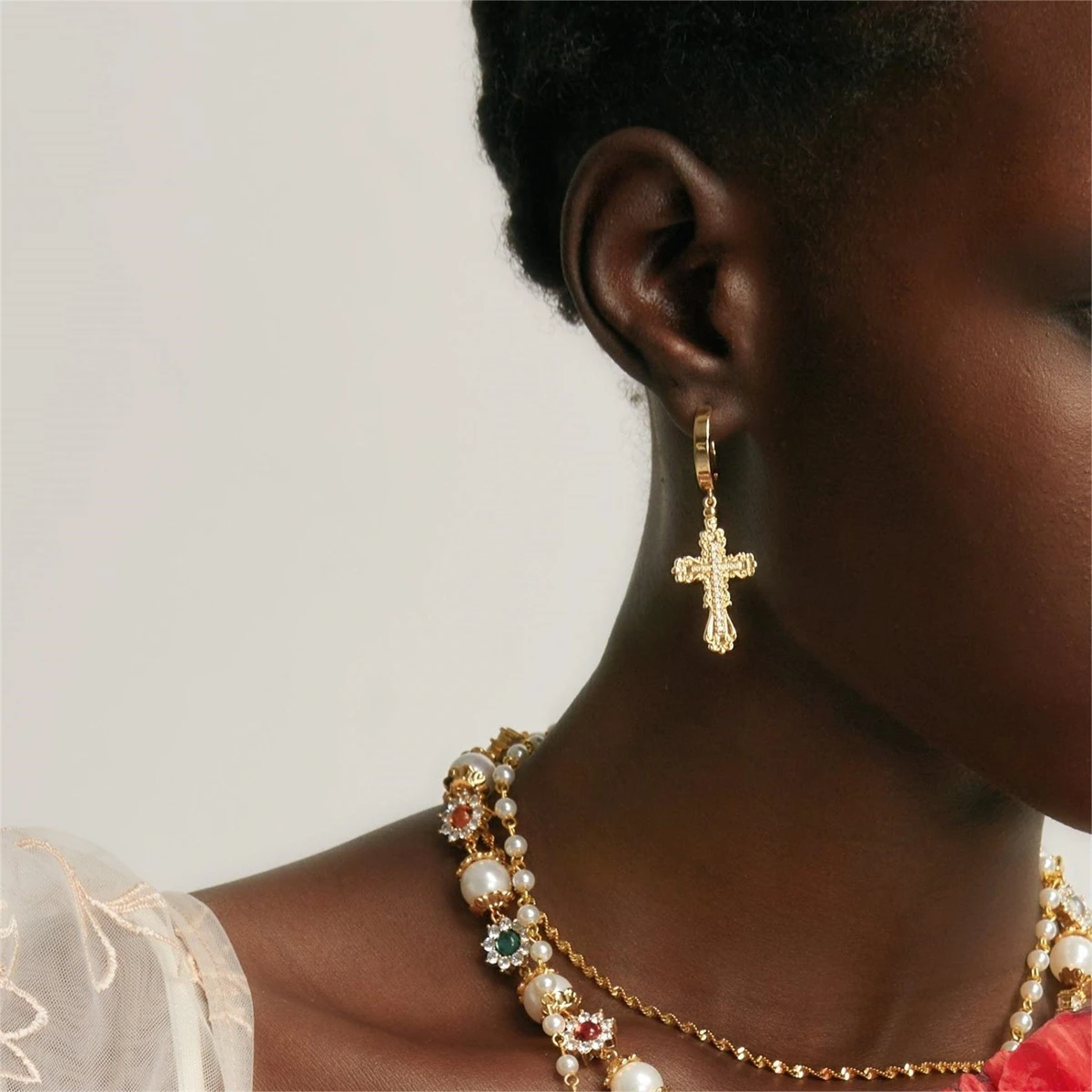 Gothic style cross necklace, women’s shell pearl, minimalist personality, punk style, real gold plating, color preservation