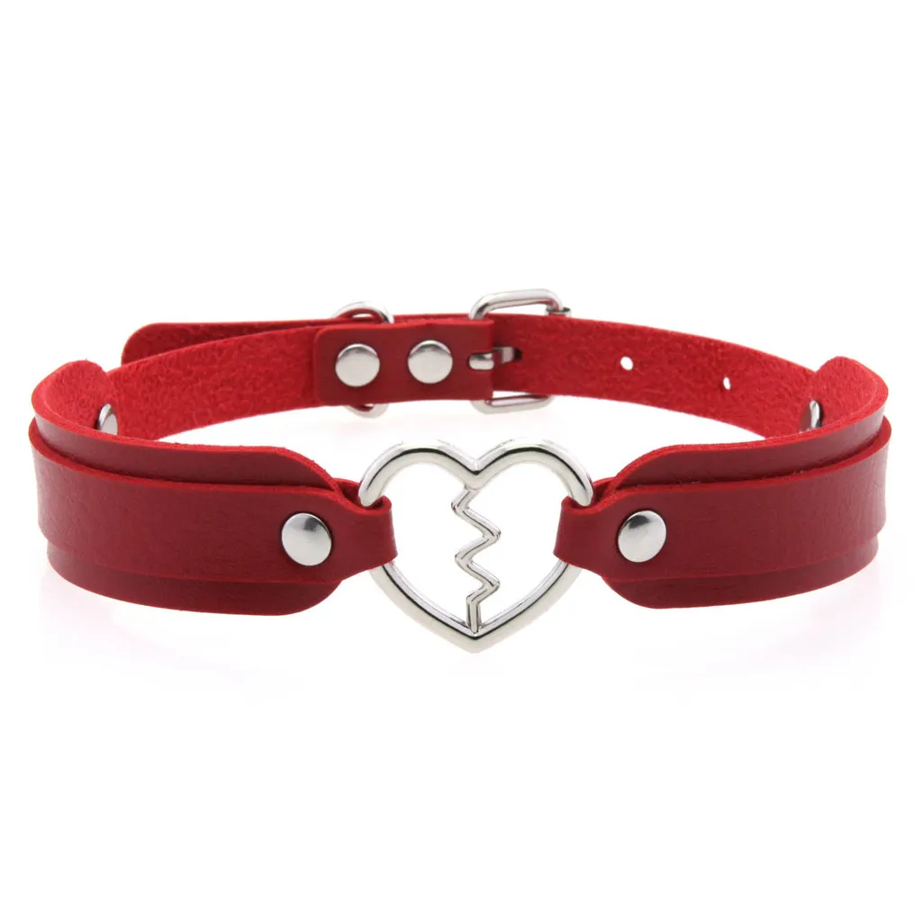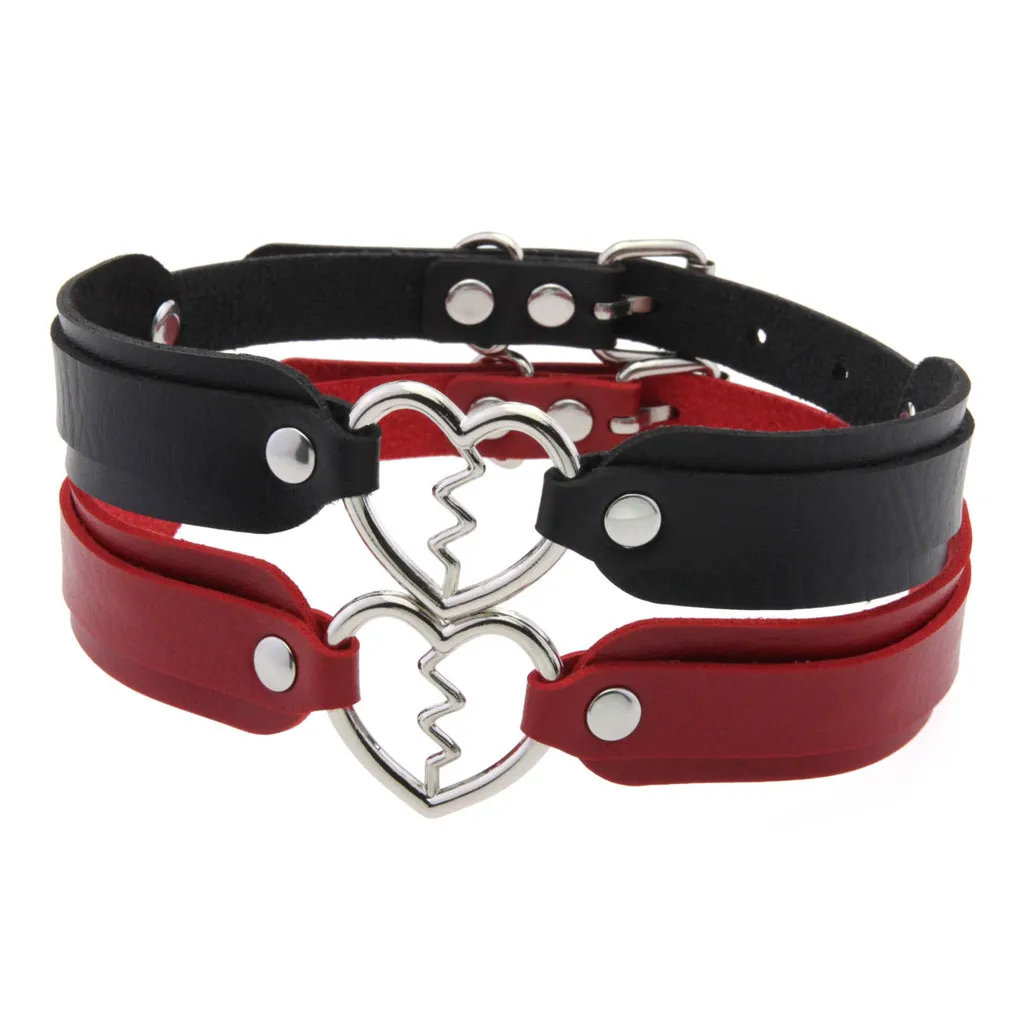 Harajuku Love Heart Lightning Leather Choker Necklaces Women Men Punk Adjustable Necklace Jewelry