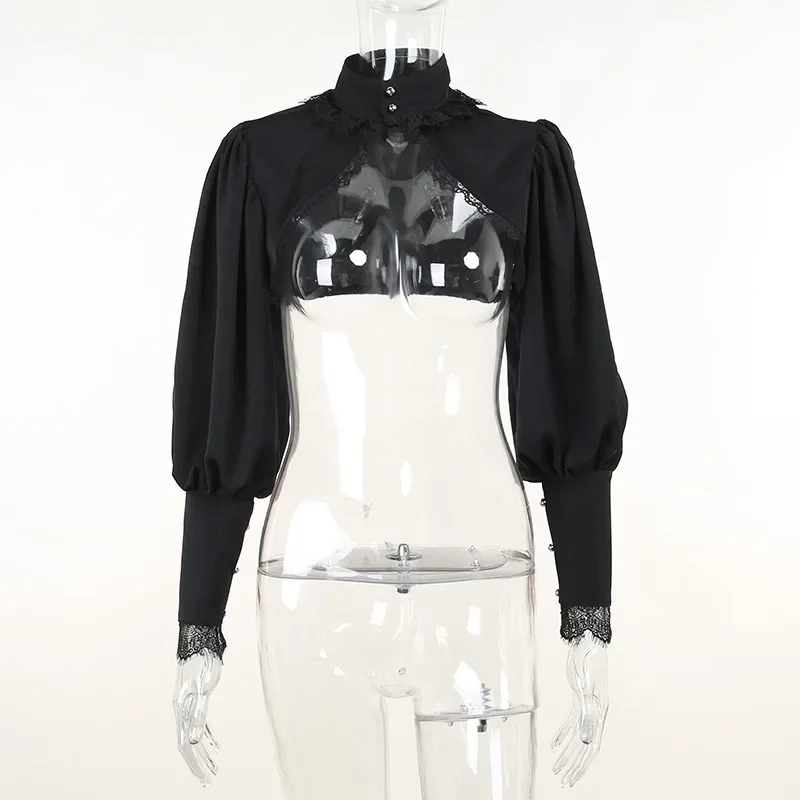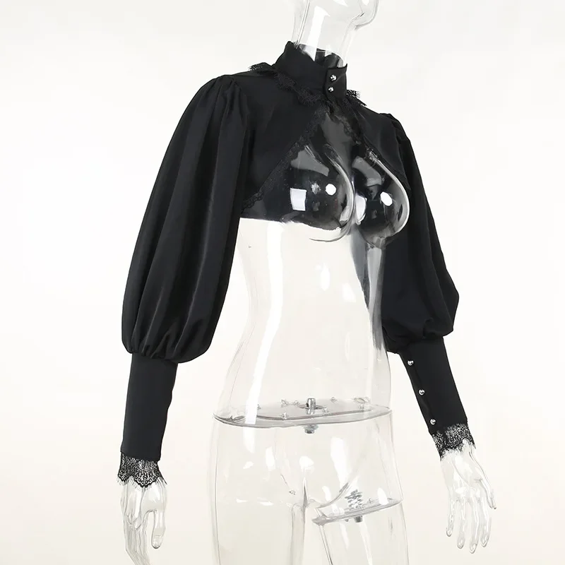 Lace Gothic Black Short Steampunk Crop Jacket Kawaii Vintage Gorgeous Palace Blouse Women Party Bolero Victorian Coat Corset