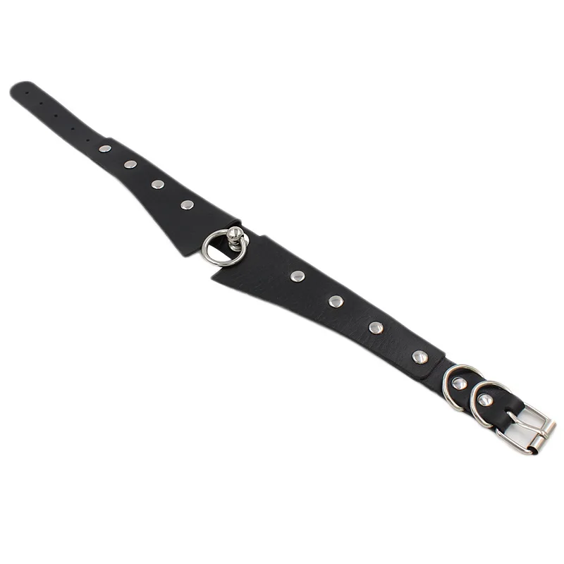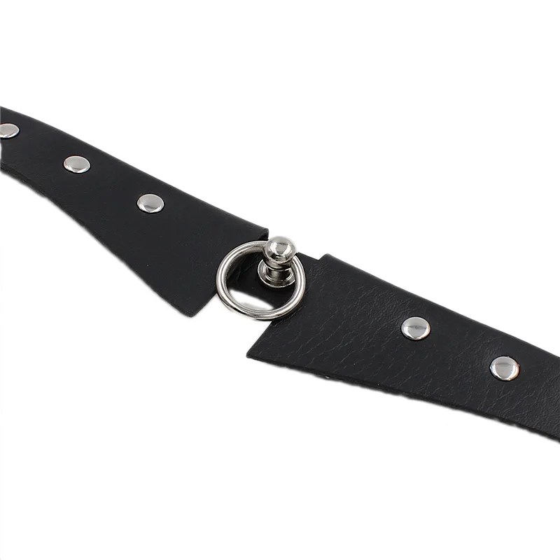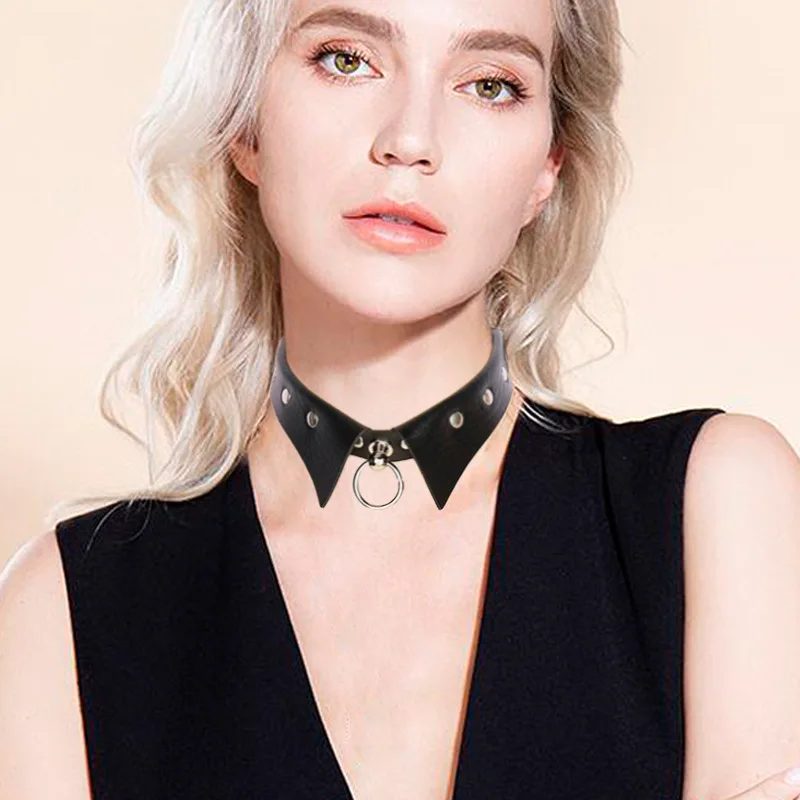 New Design Female/Male Punk Goth Faux Lapel Shirt Collar PU Leather Pendant O Round Adjustable Necklace