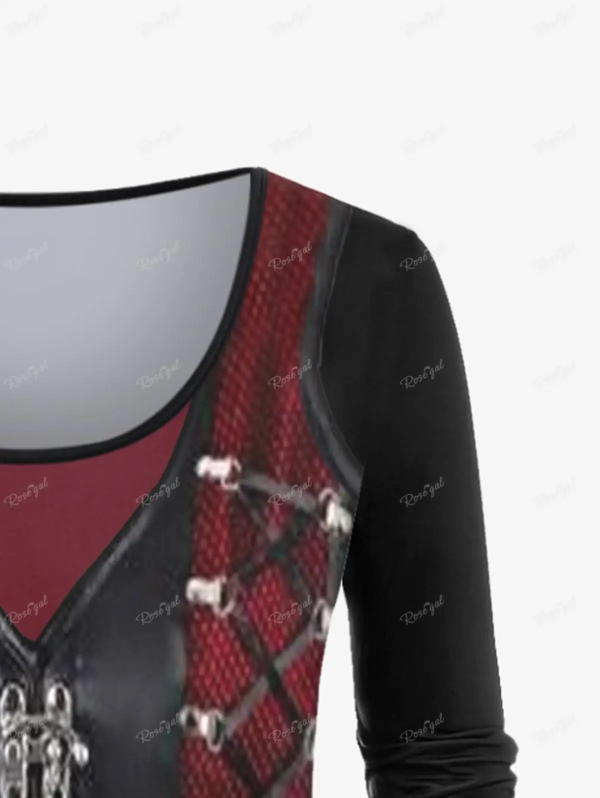 ROSEGAL Plus Size Gothic Graphic T-Shirt for Women, Long Sleeve, Zipper Buckles 3D Print Halloween Thin Tops Spring Fall Clothes