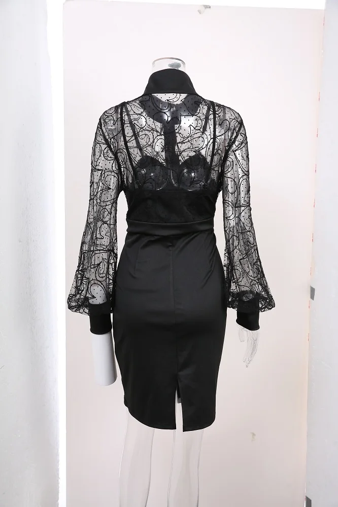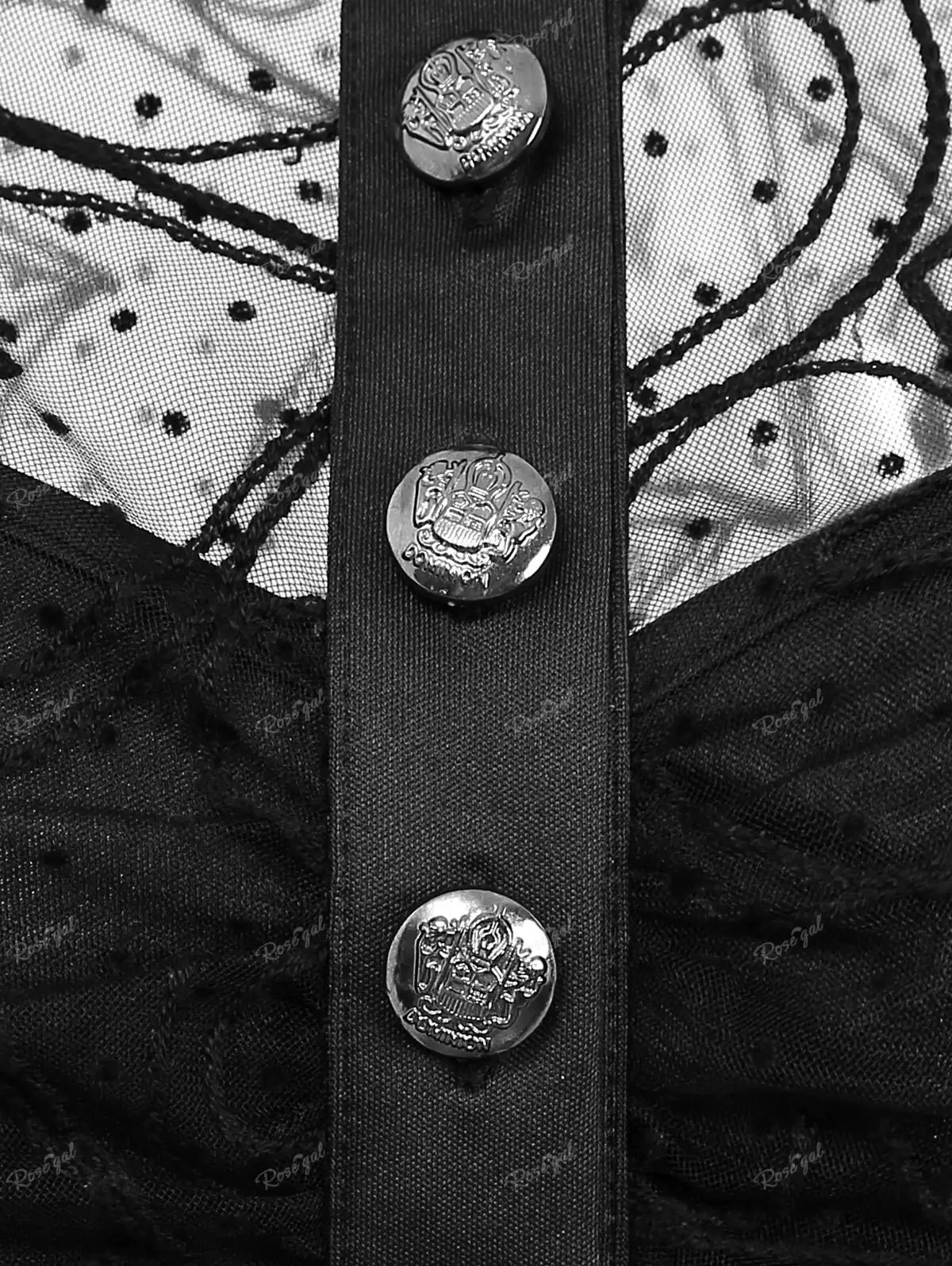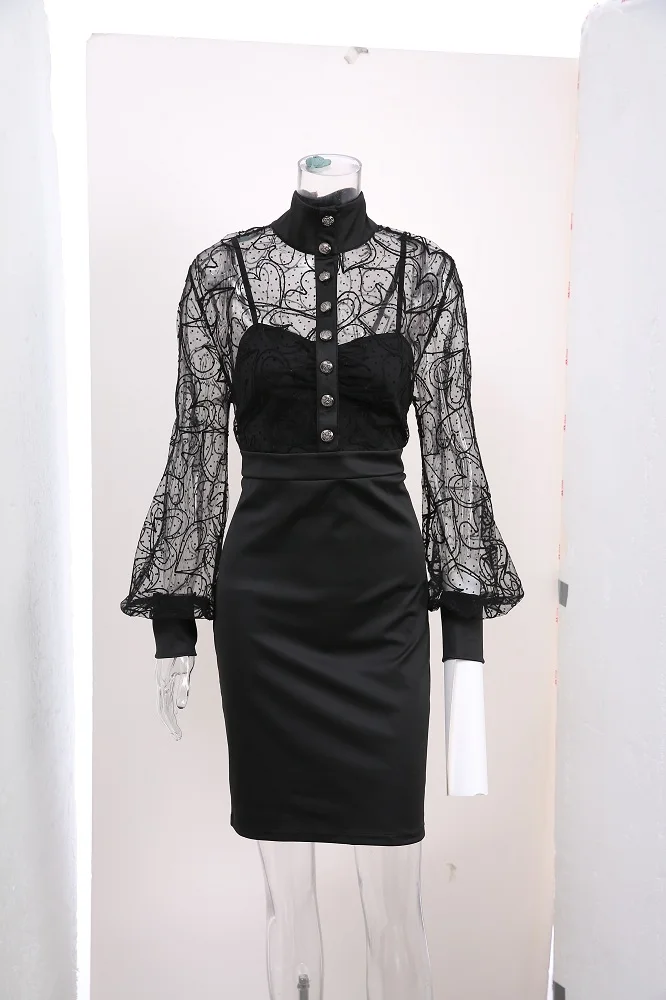 ROSEGAL Plus Size Gothic Sexy Lace Mini Dress Heart Panel Buttons Lantern Sleeves Party Dresses Patchwork Bodycon Vestidos Black