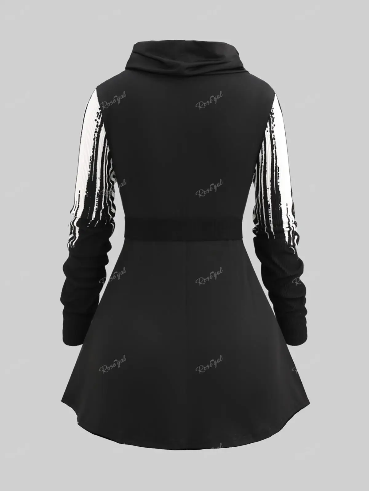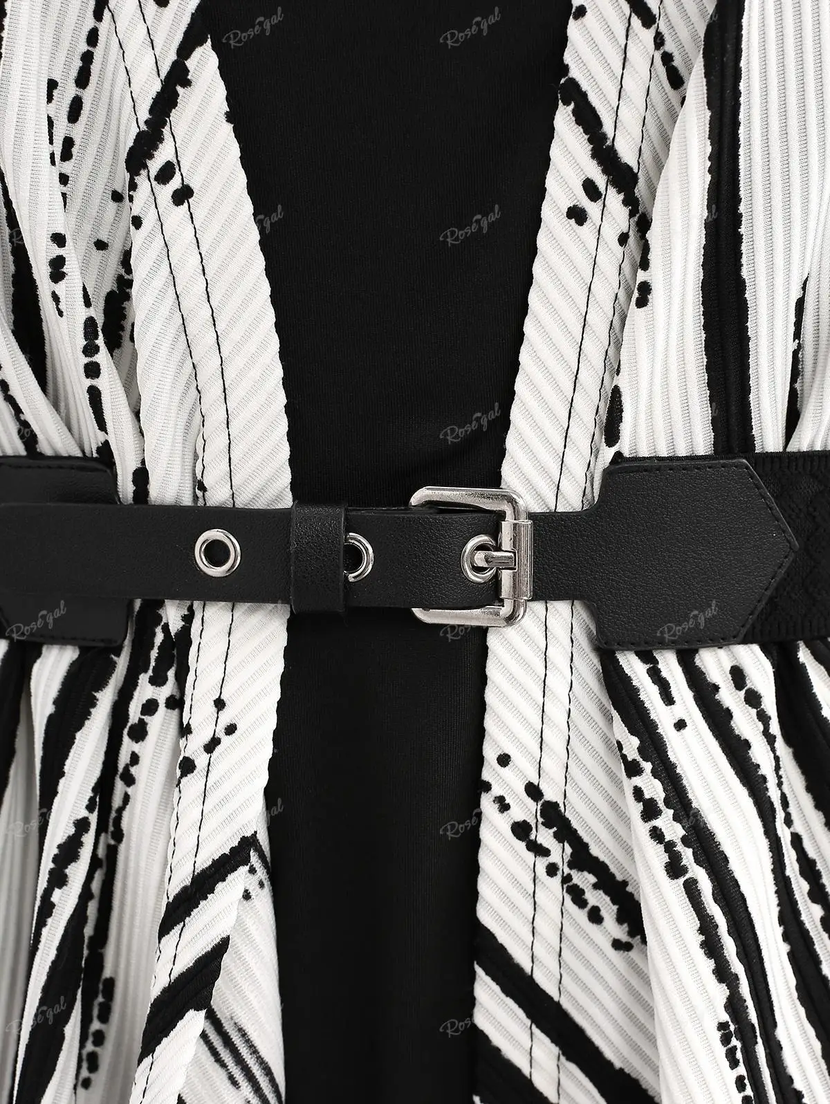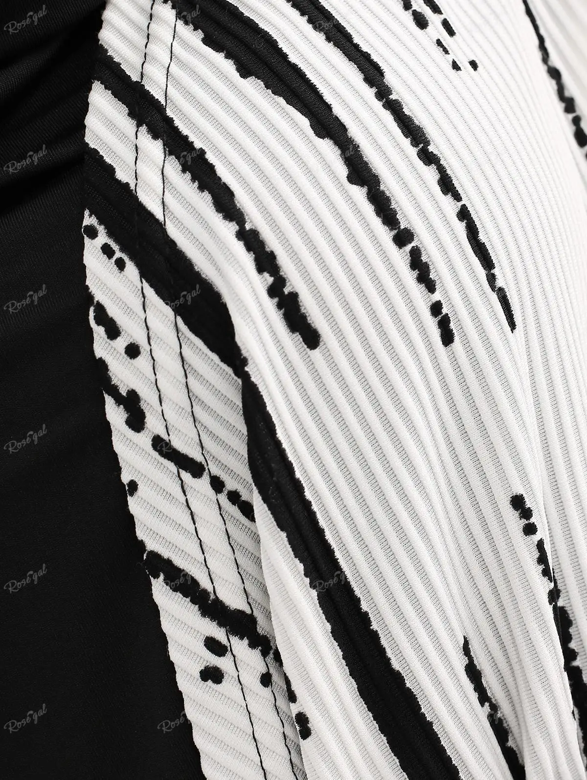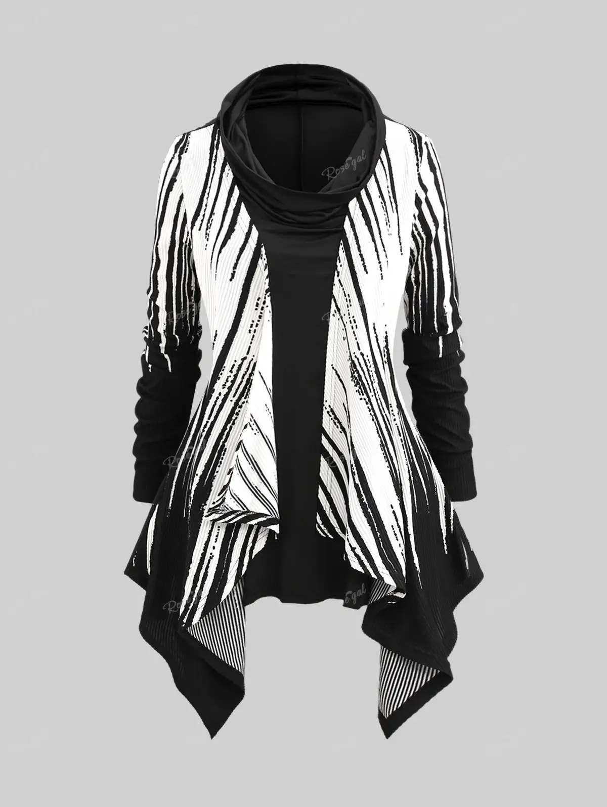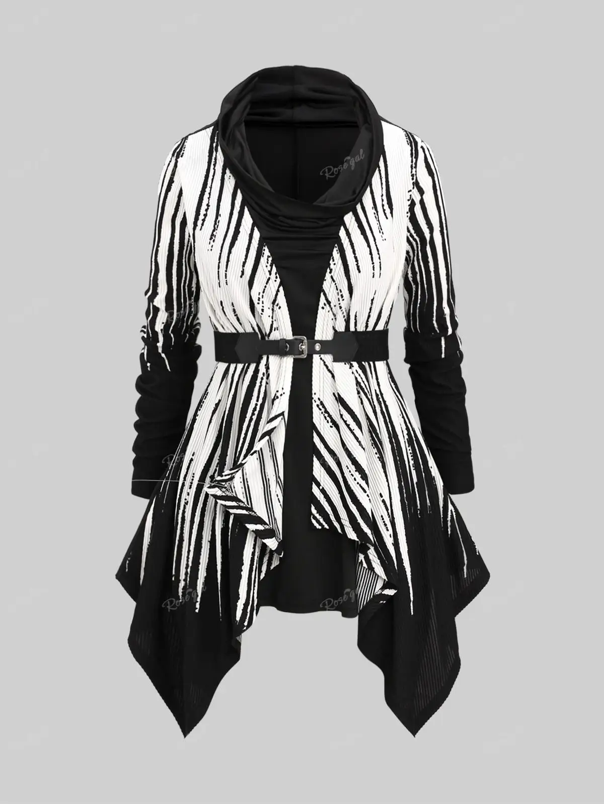 ROSEGAL-Plus Size Handkerchief Belt T-shirt for Women, Cowl Neck, White Black Stripes, Zebra Print Tee, Autumn Casual Tops