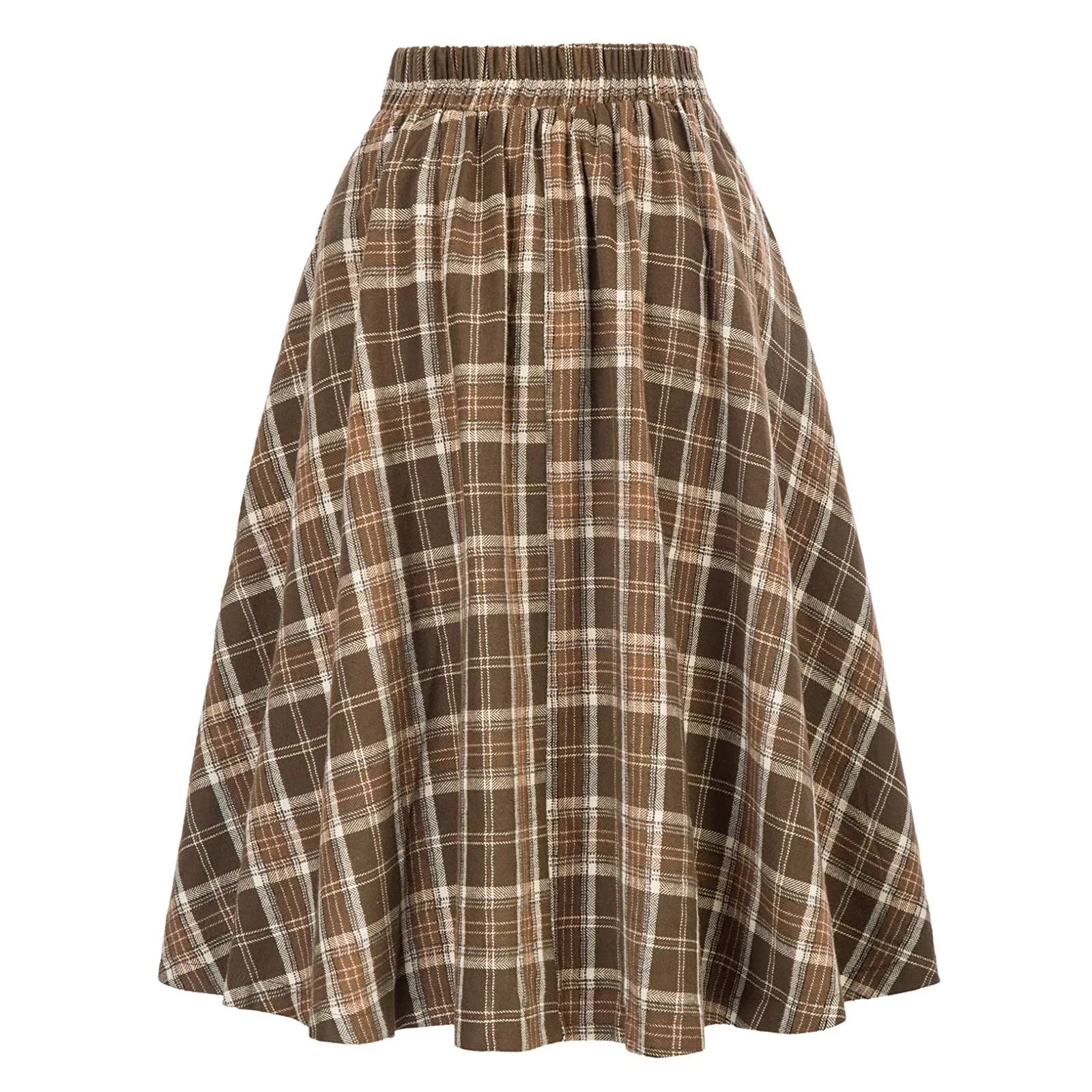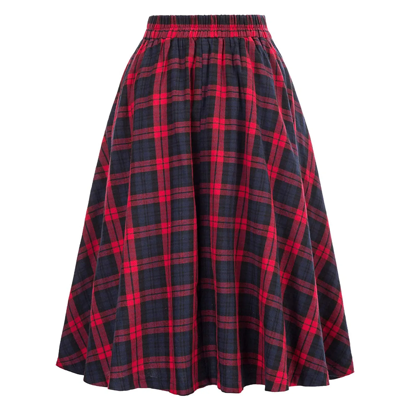 SISHION 2025 Autumn New A Line Swing Buttons Long Midi Vintage Skirt SS0037 Red Green High Waist Plaid Skirts for Women Jupe