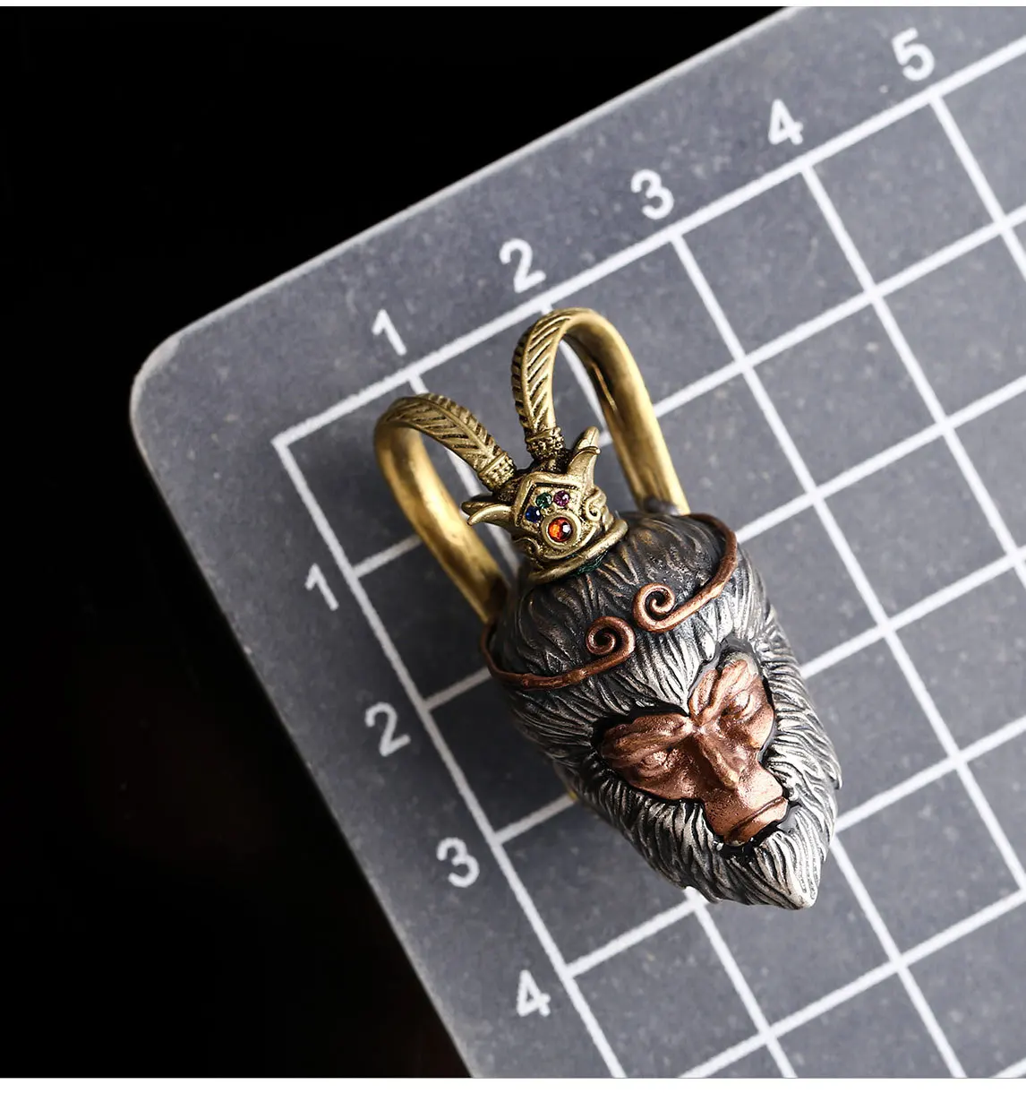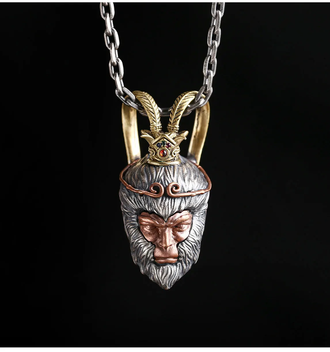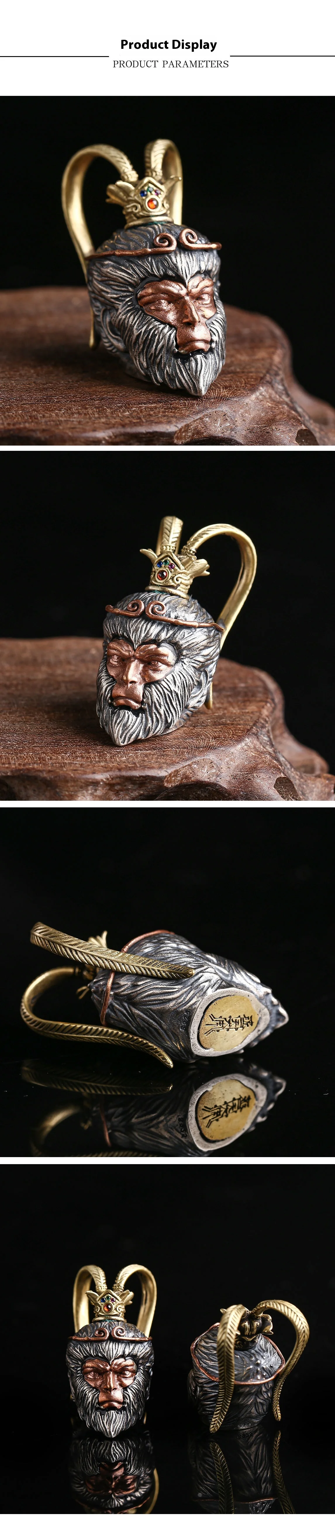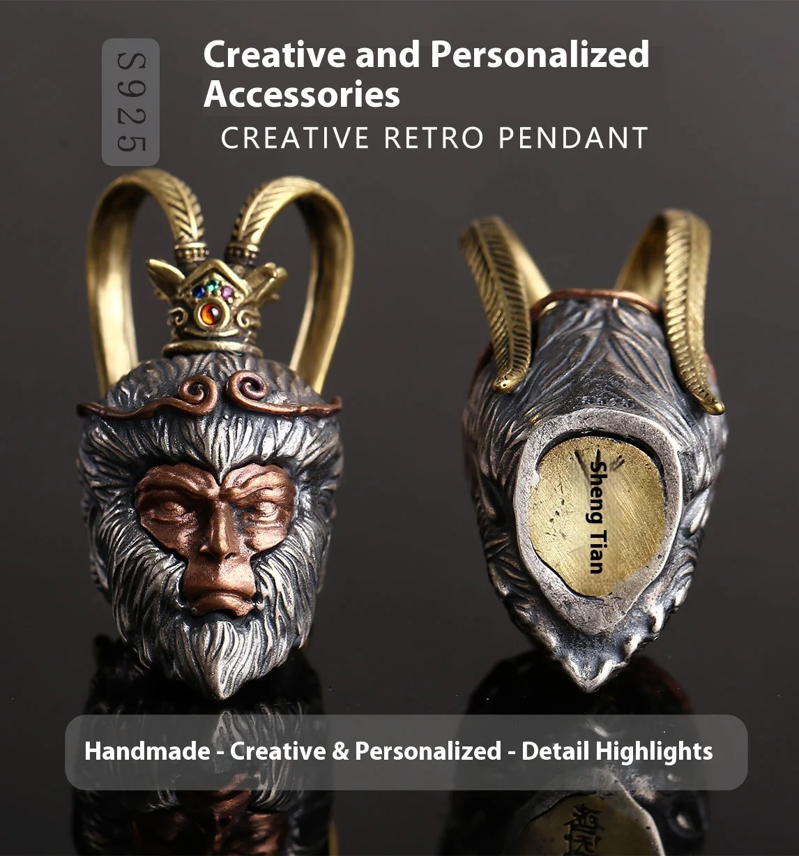 Solid S925 Silver Monkey King Wukong Pendant for Men and Women Tibetan DIY Accessories for Jewelry Crafting Yellow Is Copper