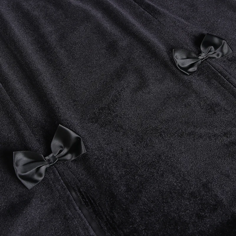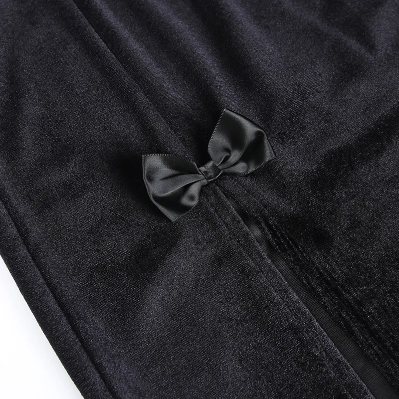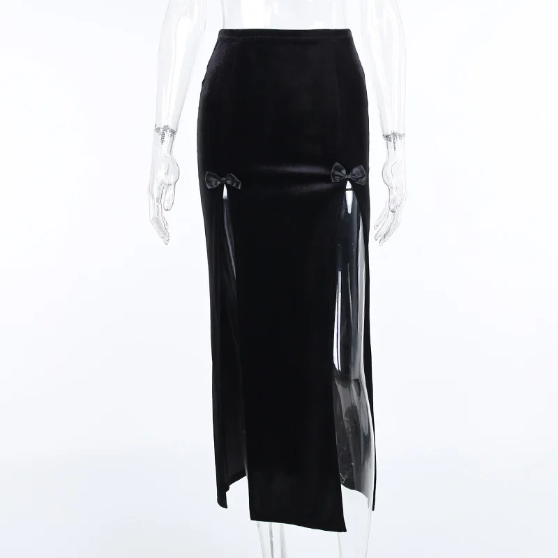 Vintage Gothic Black Split Skirts Aesthetic Sexy High Waist Bow Bodycon Long Skirt Elegant Punk Partywear Clothes