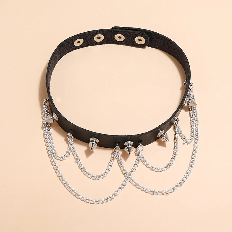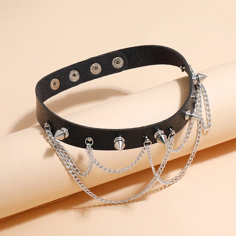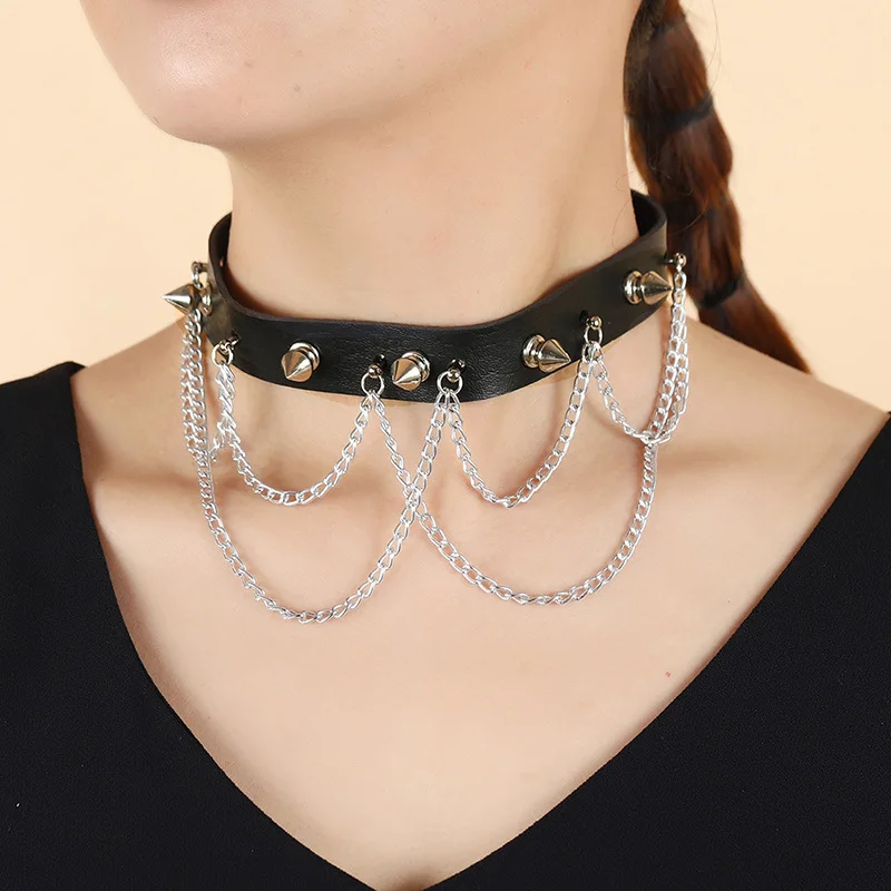 Wholesale Punk Goth Metal Chain PU Leather Choker Collar Necklace for Women Girl Sexy Cosplay Jewelry Necklace