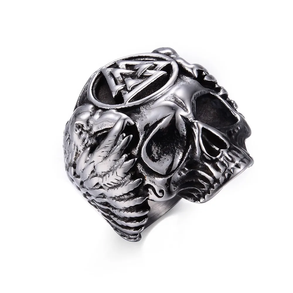 Wish Eaby Alloy Viking Ordin Crow Skull Ring One-eyed Punk Jewelry wings Men’s Ring