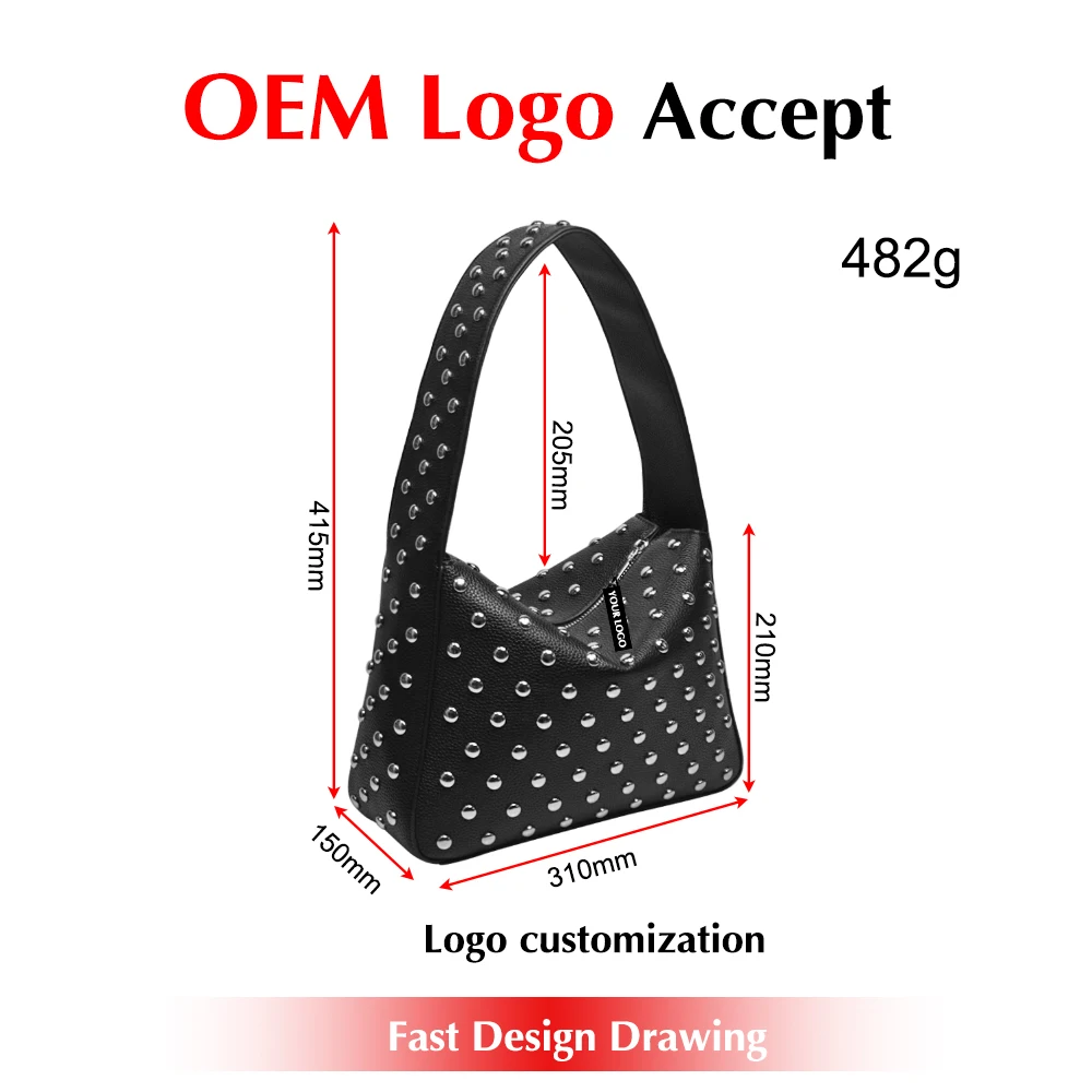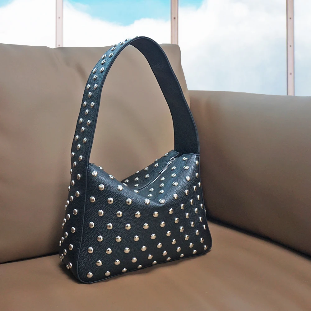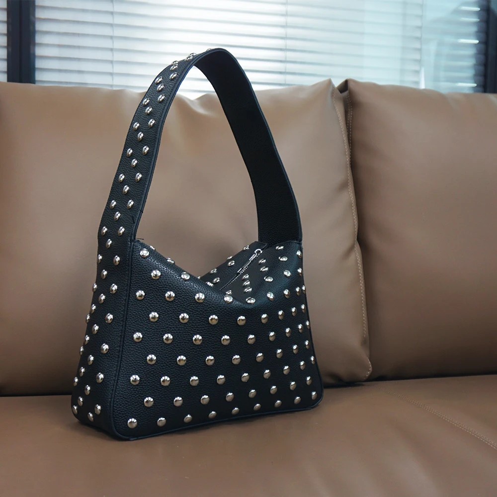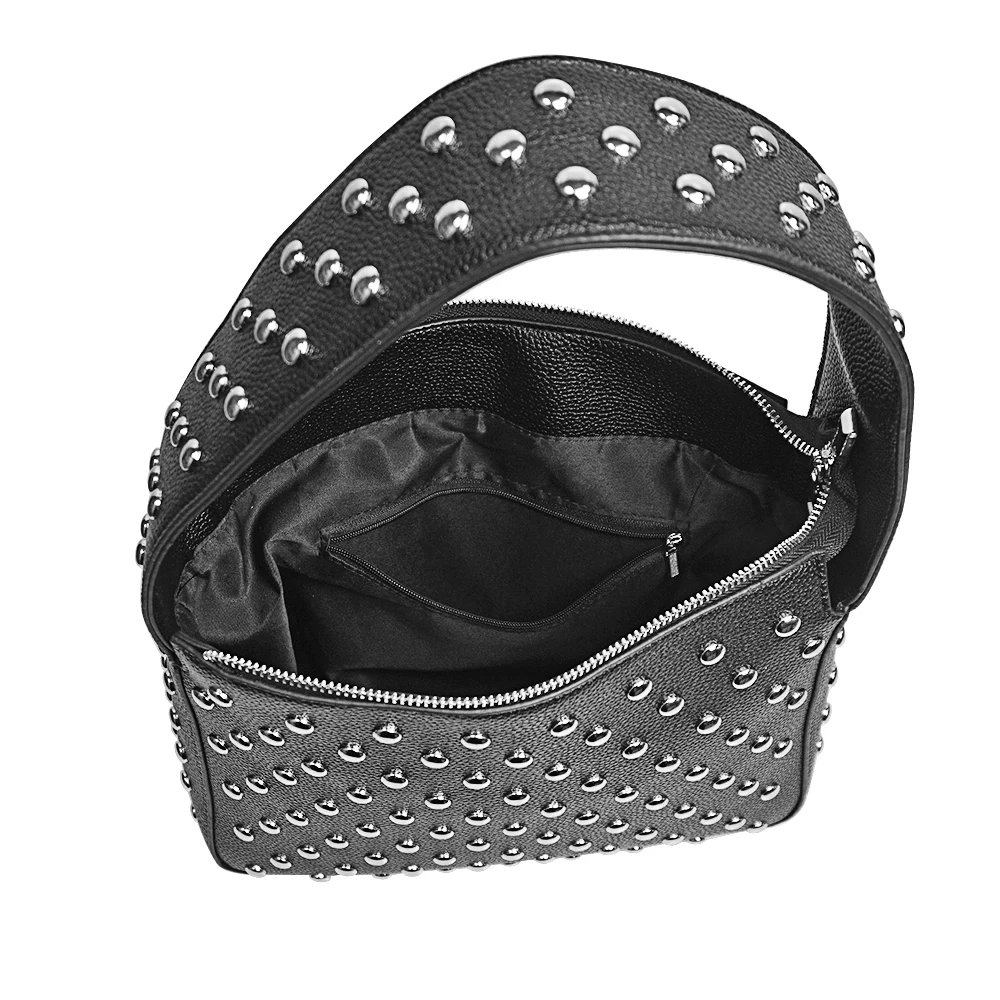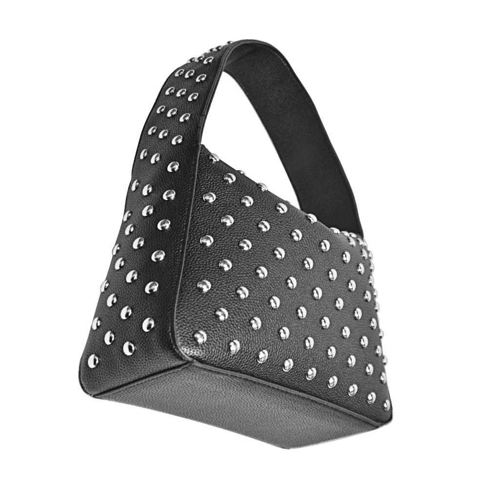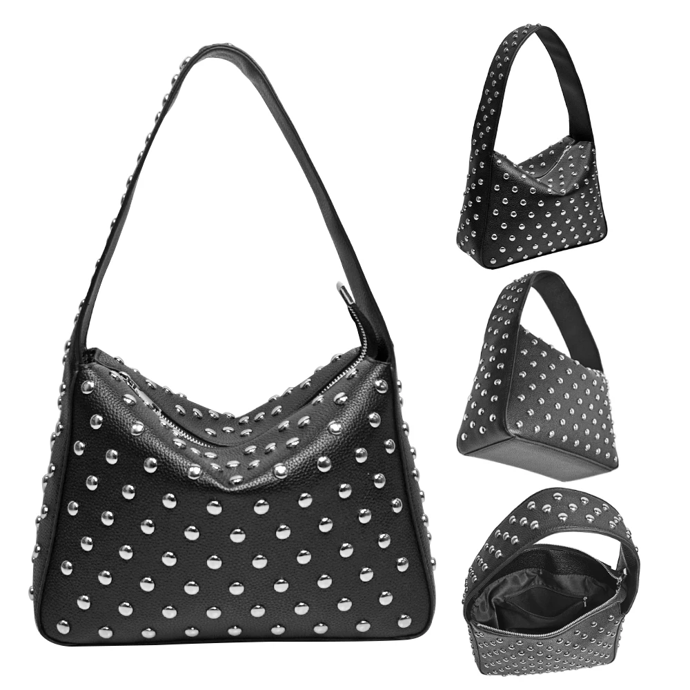 Women Ladies Punk Rivet Purse Satchel PU Leather Shoulder Crossbody Top-handle Bag Tote Handbag Black