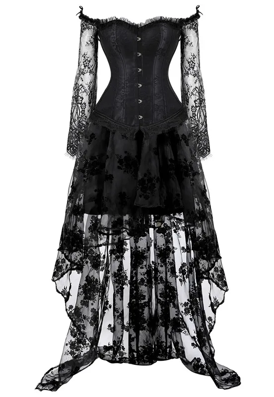 Women’s Vintage Steampunk Corset Dress Victorian Retro Gothic Corset Top Burlesque Lace Corset and Bustiers Skirts Set