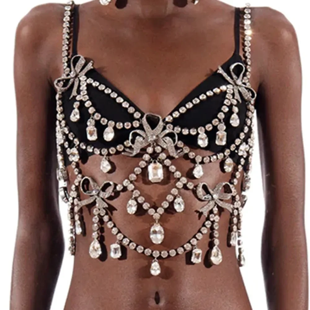 XSBODY Charm Exaggerated Big Crystal Lingerie Chest Chain Water Drop Gem Rhinestone Bra Vest Chain Ladies Clubwear Jewelry