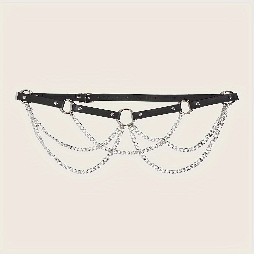 1pc Gothic Black PU Leather Waist Chain Belt With Chain Pendant Adjustable Harness Belt