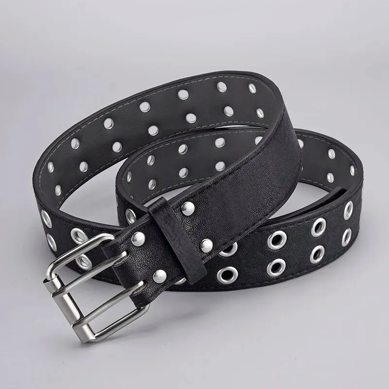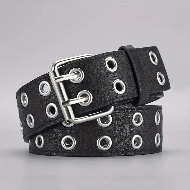 1pc Women’s Belt Trend Simple Double Hole Men Belt Punk Hip Hop Rock Style Subculture Y2K Belt Punch Free Belt for Men and Women