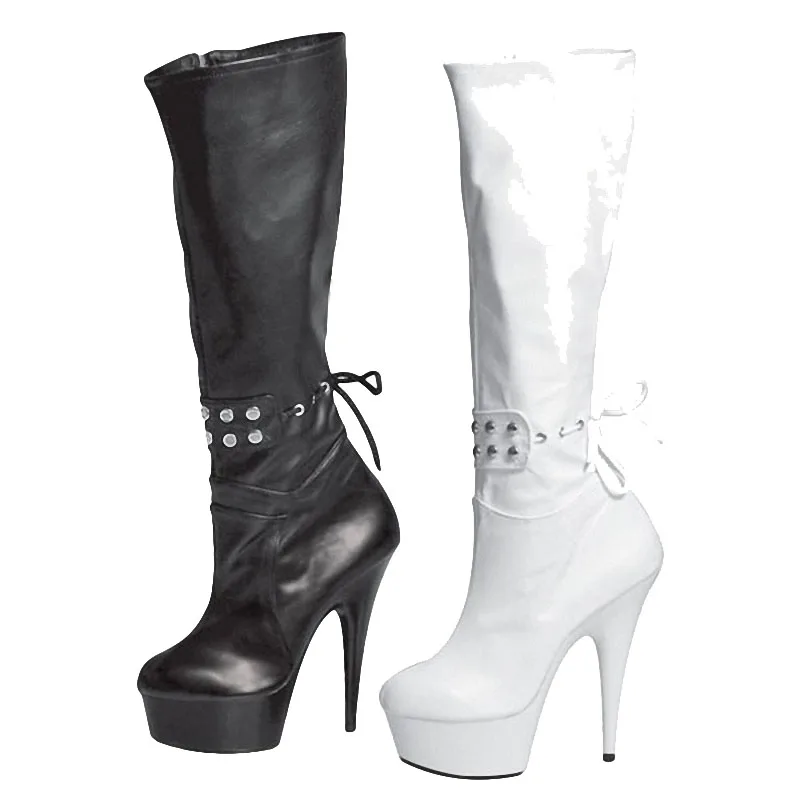 6 Inch Women’s Thigh High 15Cm Platform Heels Gothic Stage Show Gothic Shoes Fetish Lace Vestidos Autumn Zip Sexy Stripper Pole