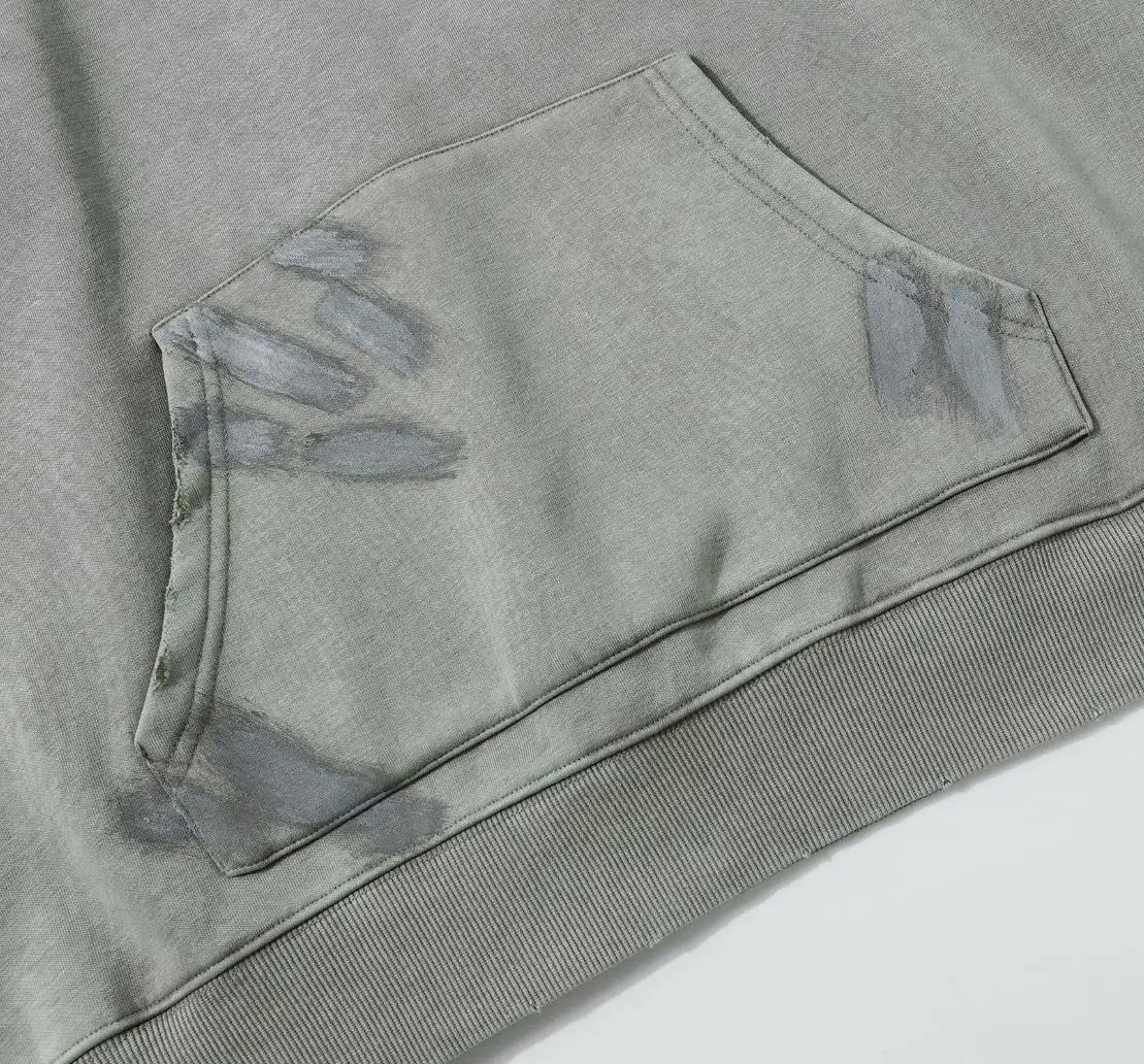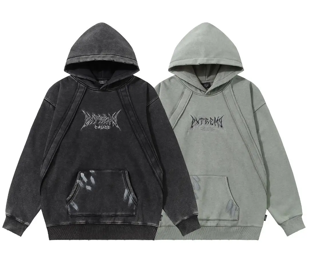 American Vintage Fashion Wash to Do Old Deconstructed Stitching Embroidery Gothic Letter Hoodie Plus Fleece High Street