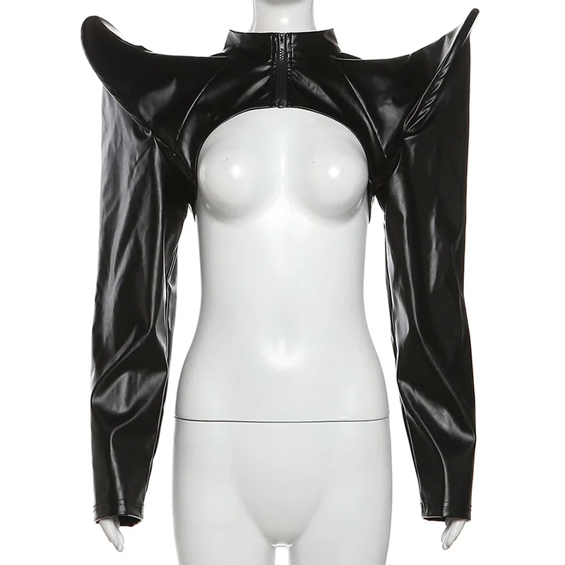 Goth Dark Cyber Y2k Punk Faux Leather Crop Jackets Gothic Grunge Streetwear Fashion Coats Zip Up Female High Shoulder Cardigans