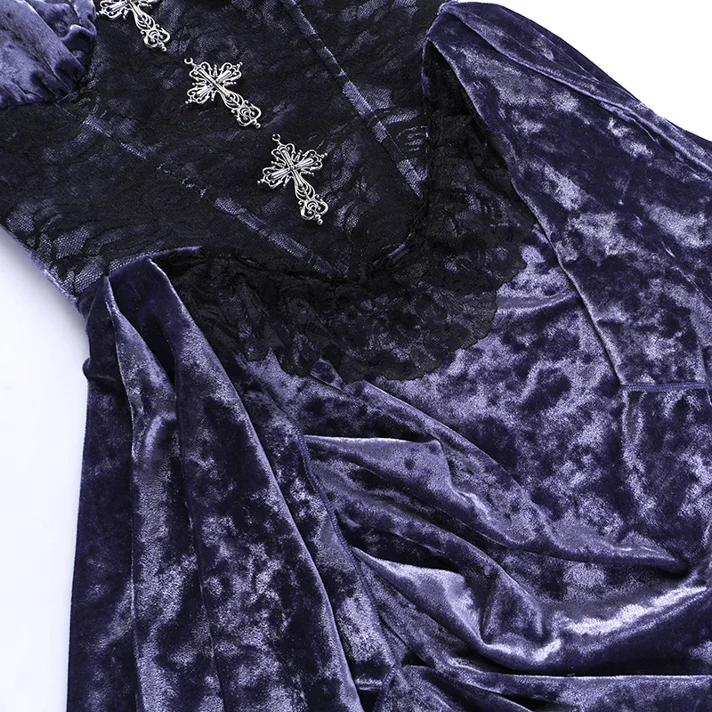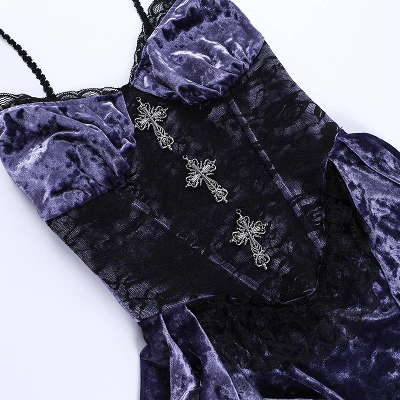 Goth Dark Gorgeous Victoria Gothic Velvet A-line Dresses Female Elegant Evening Lolita Partywear Grunge Sling Lace Hem Alt Cloth