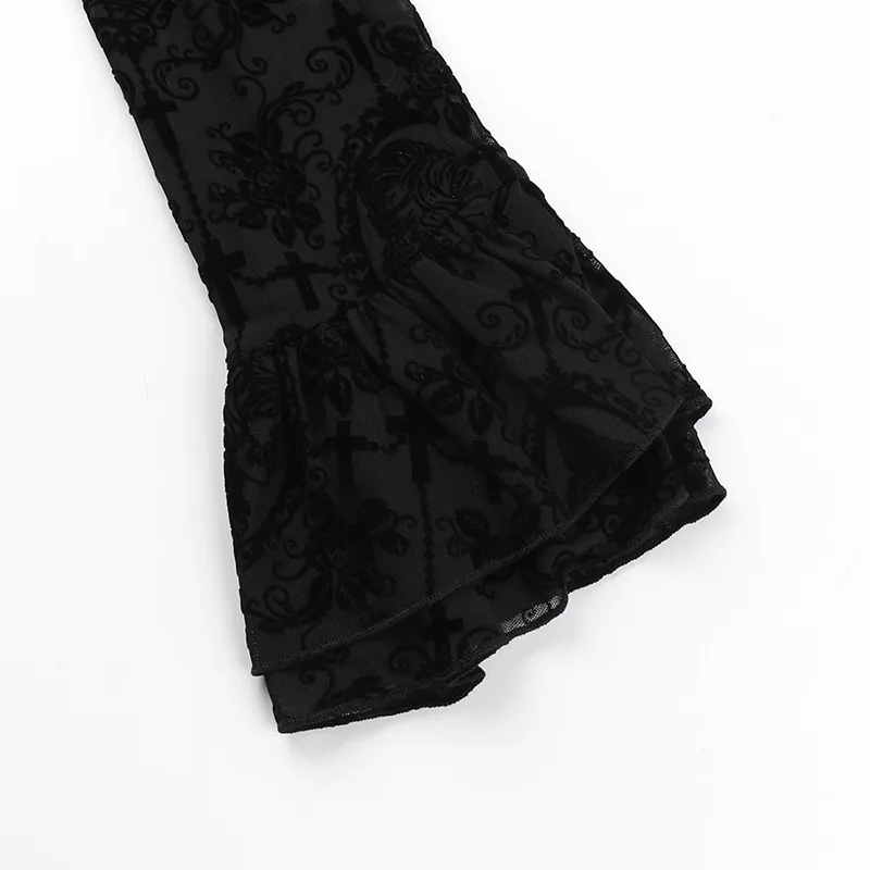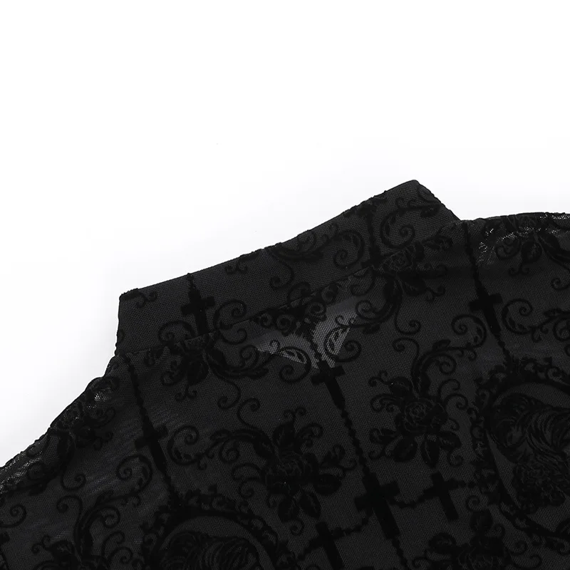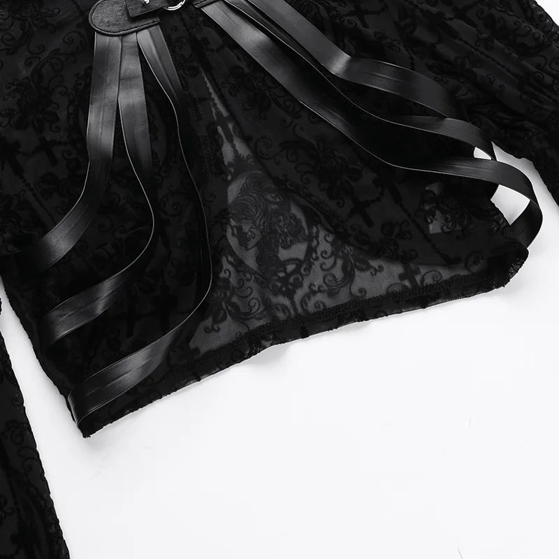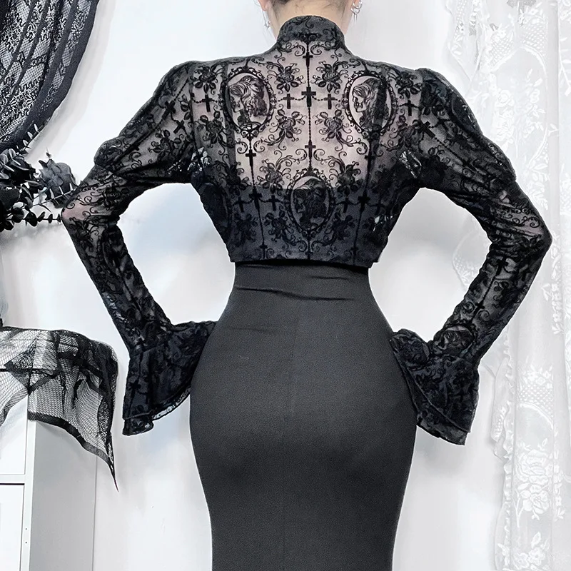 Goth Dark Women Elegant Flocking Crop Cardigan Coats Y2K Grunge Techwear Mall Gothic Lace See Through Shrug Tops Alt Partywear