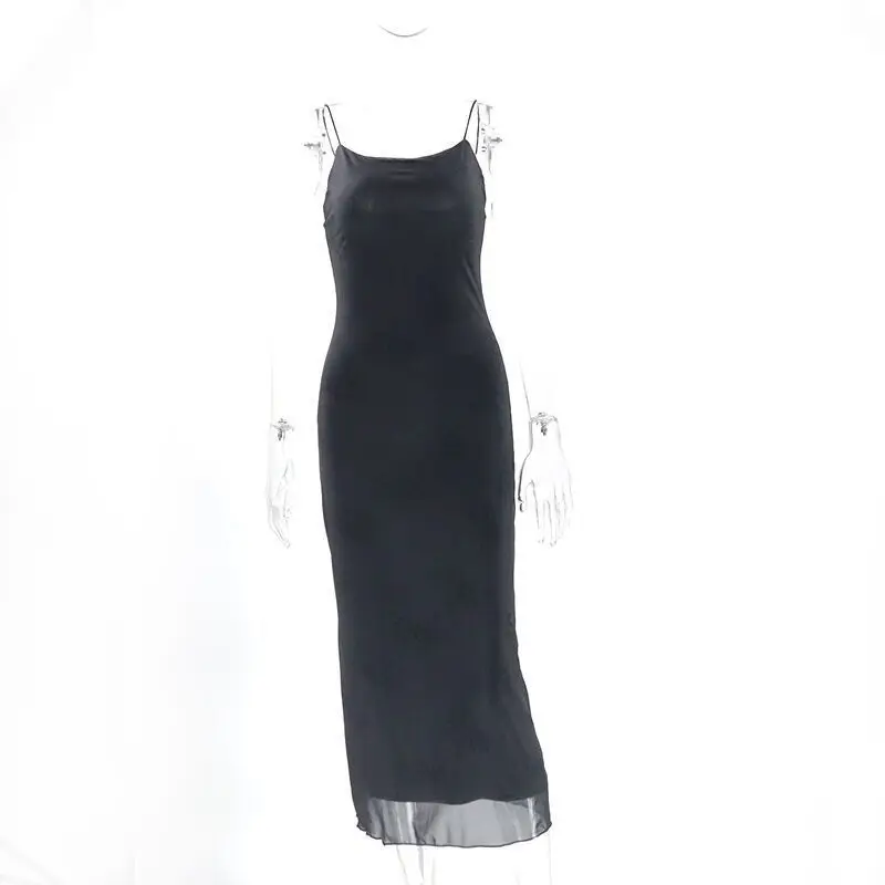 Gothic Black Sexy Women’s Dresses Summer Floral Print Streetwear Sleeveless Mesh Patchwork Dress Elegant Party Club Lolita Dress