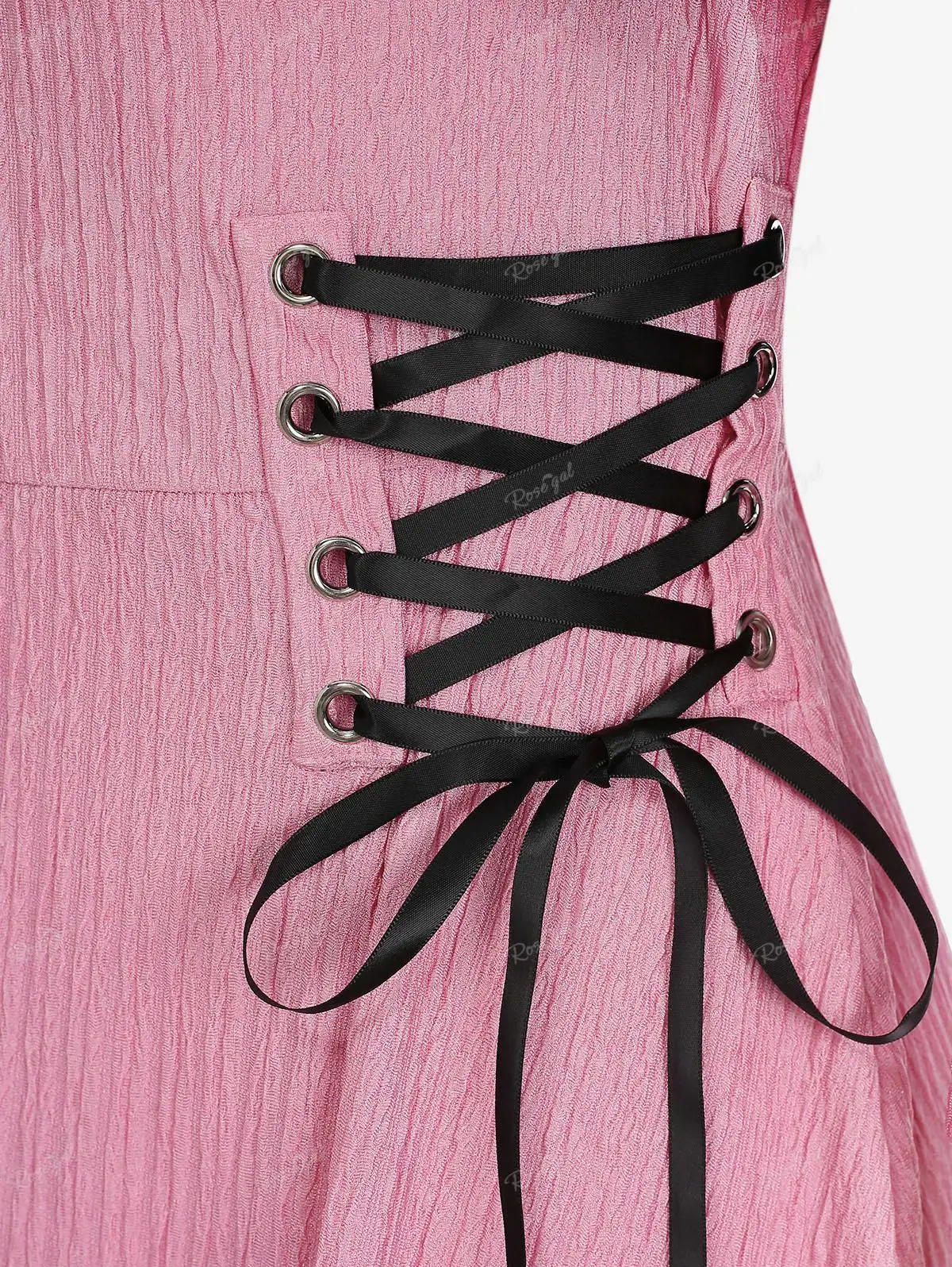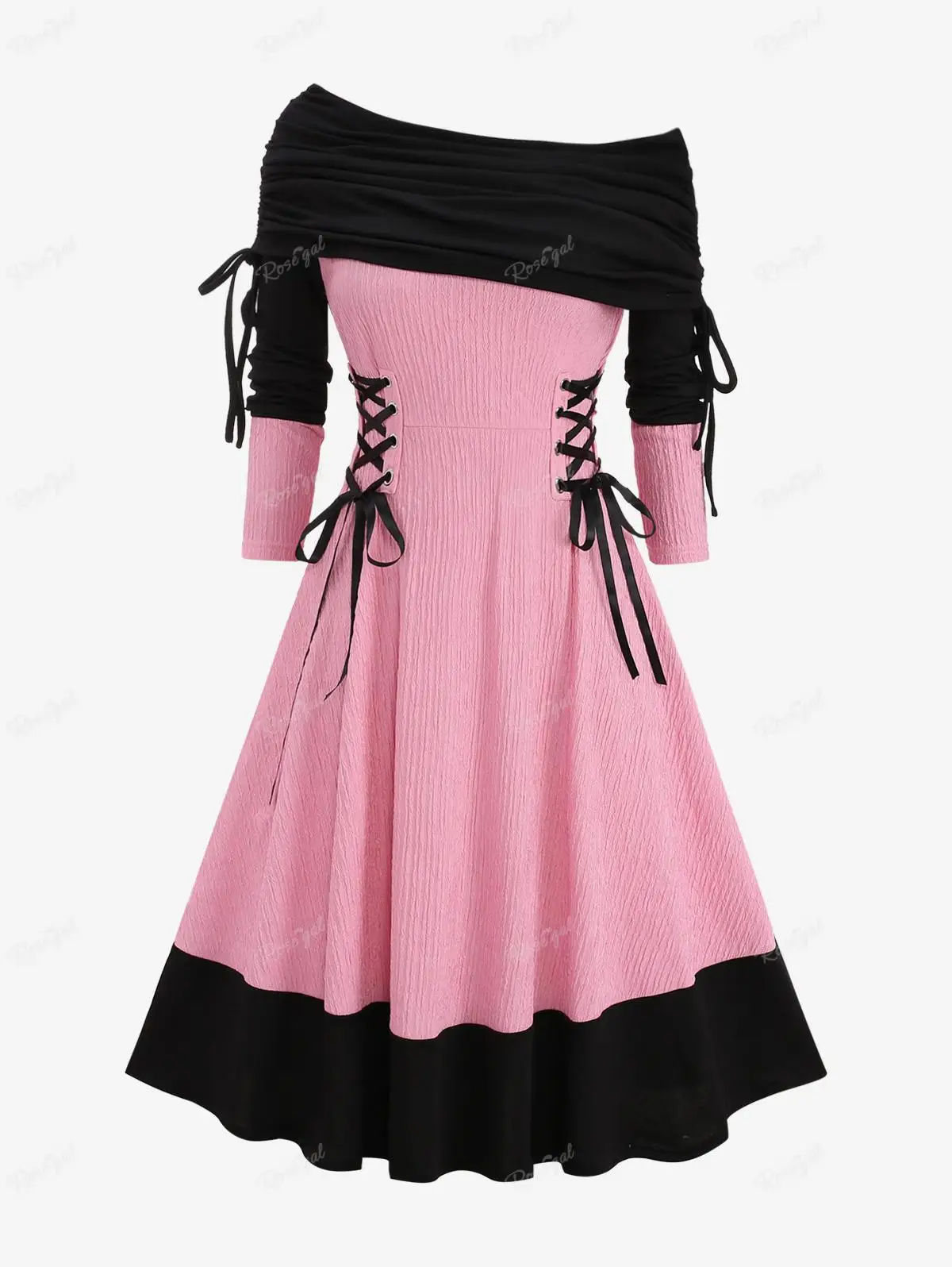 ROSEGAL-Plus Size Patchwork Textured Sweater Dress for Women, Light Pink, Long Sleeves, Cowl Neck, Lace Up, Ruched Dresses