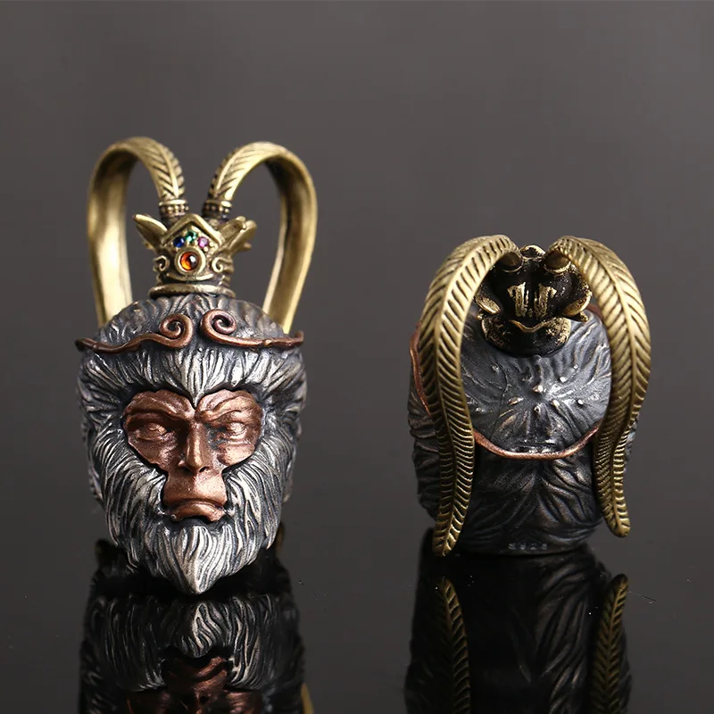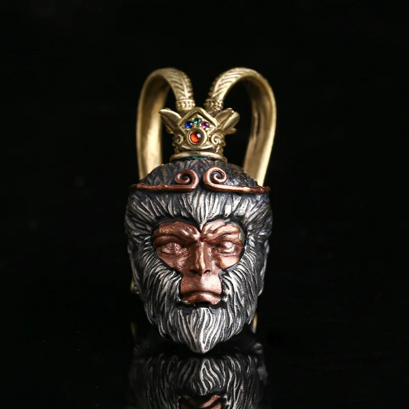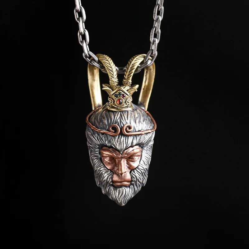 Solid S925 Silver Monkey King Wukong Pendant for Men and Women Tibetan DIY Accessories for Jewelry Crafting Yellow Is Copper