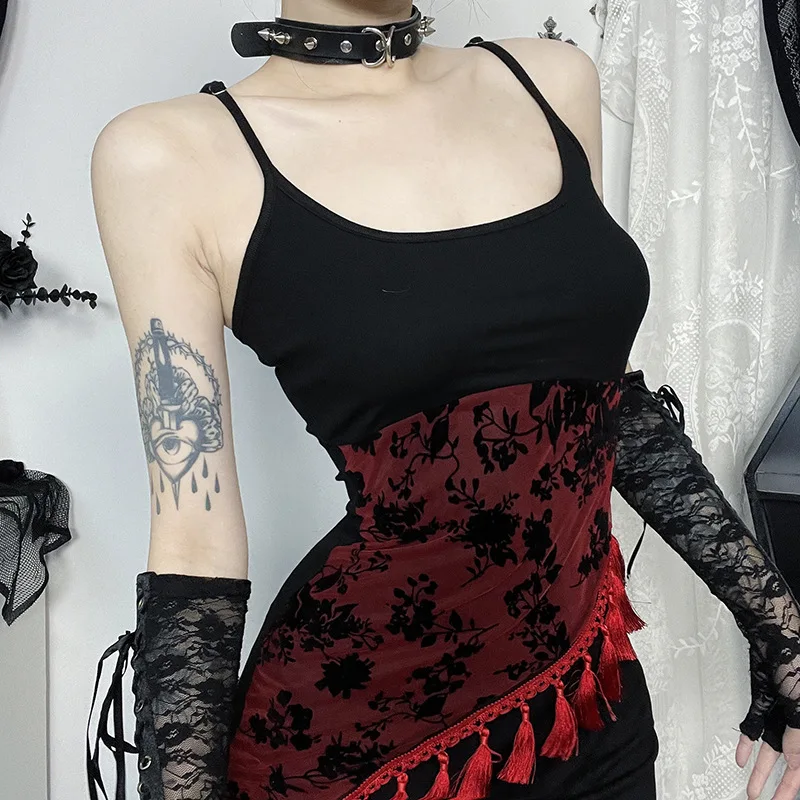 Goth Sexy Lace Corset Crop Tops Camis Y2K Haraiuku Aesthetic Black Red Cross Basic Tank Top Summer Women Grunge Streetwear