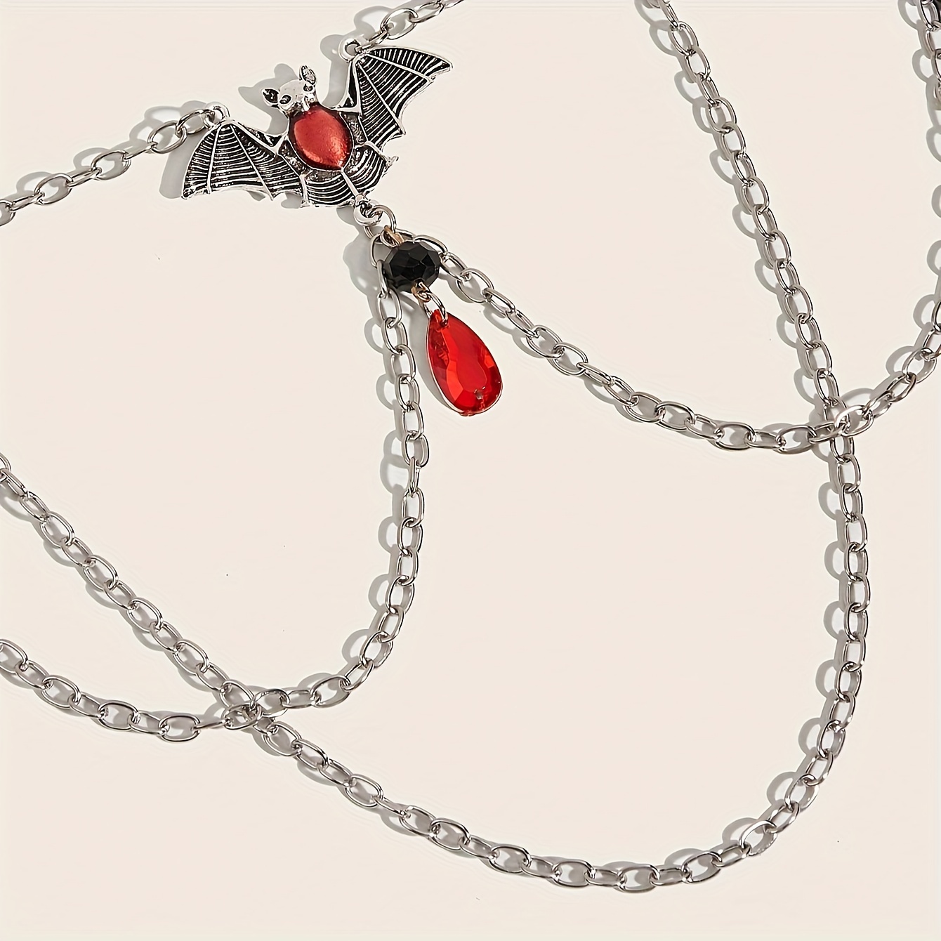 Gothic Bat Layered Chain Belts For Women Red Rhinestone Pendant Waist Chain Punk Body Jewelry Dress Accessories