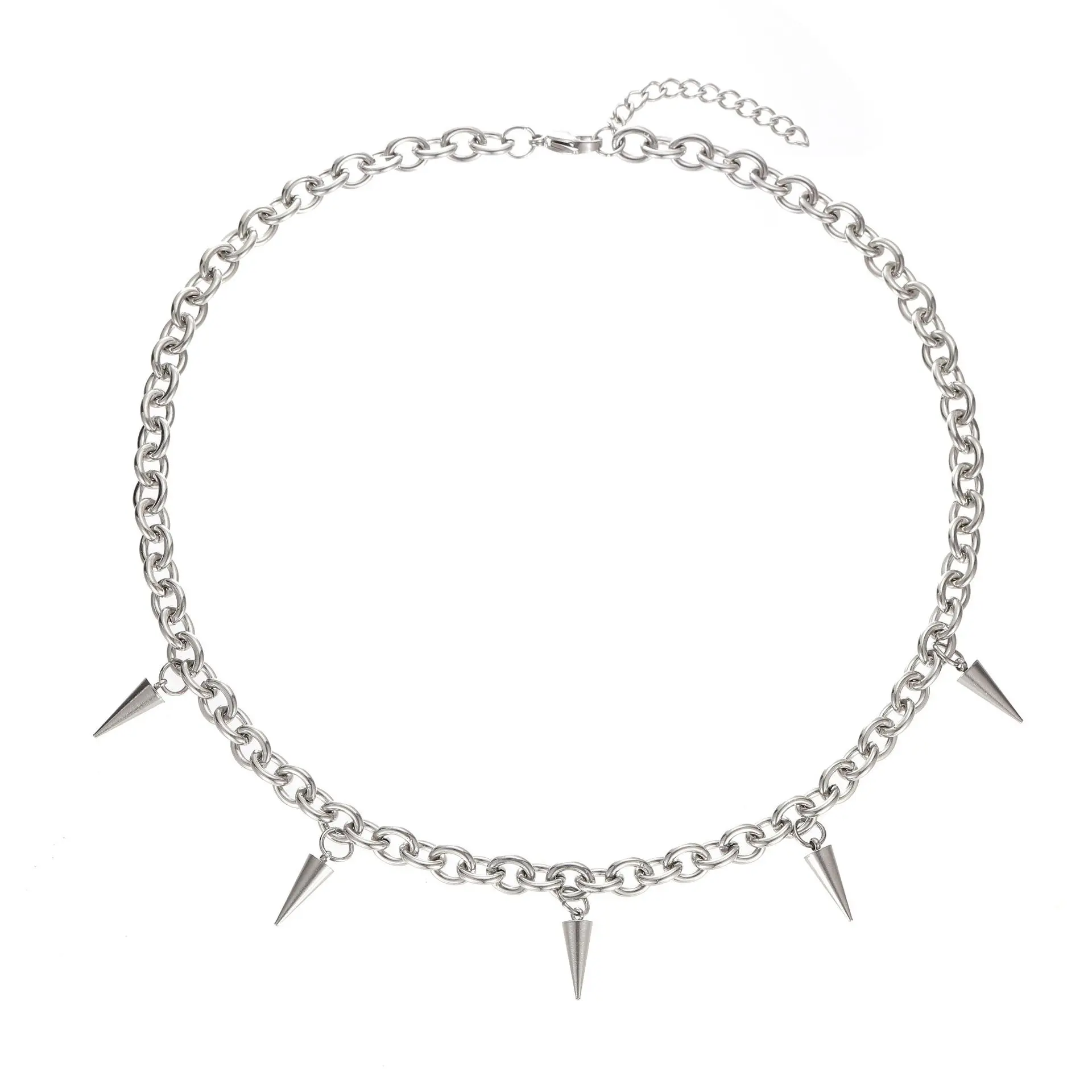 Men’s Gothic Punk Style Silver Color Stainless Steel Link Chain Spike Choker Necklace Jewelry For Women