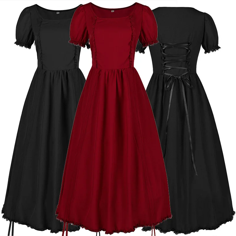 Lace Medieval Dress Costume Vintage Women Lolita Long Robe Dress Renaissance Viking Gothic Fantasy Ball Gown